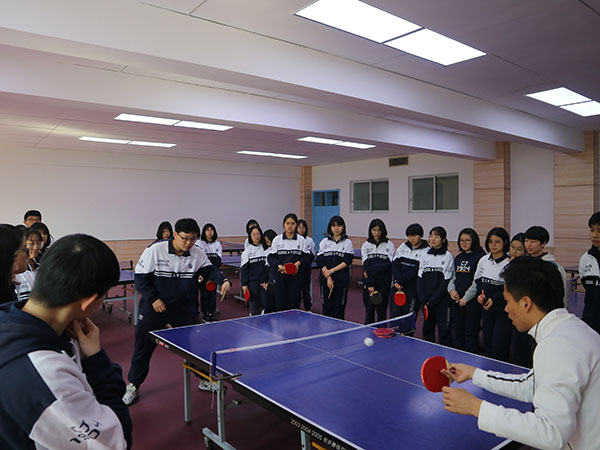 十一月的最后一天,天气骤降,寒风瑟瑟,但乒乓球馆内的学生却朝气蓬勃,兴致盎然。原来是高二年级方桂钰老师在上《乒乓球--反手推挡技术》的公开课,吸引了体育组的各位老师前来听课评课。