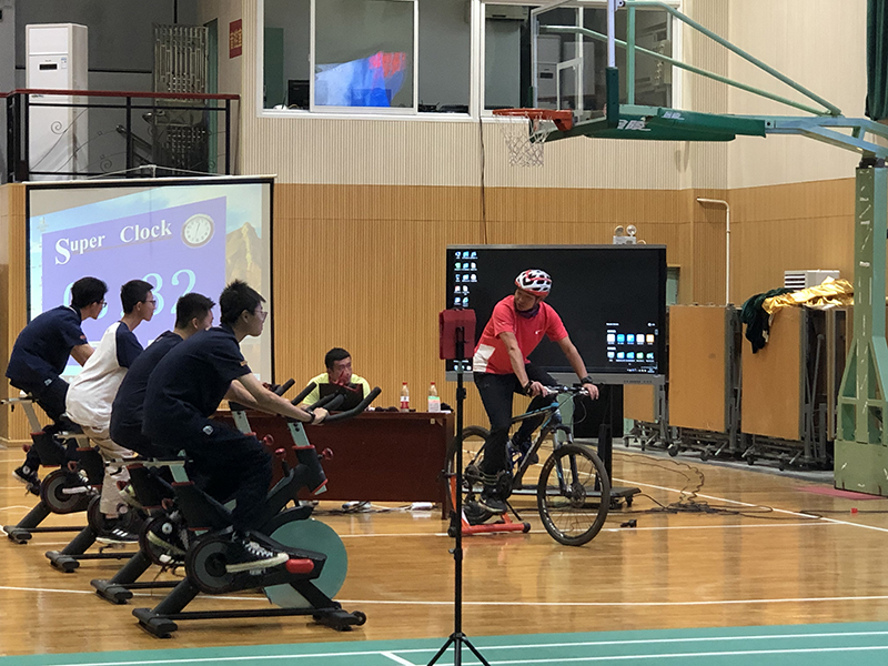 “麻烦体育组的老师协助搬一下器材”,场地组织老师在话筒里喊道。今年片段教学比赛综合组的现场,可能最忙碌的就是体育老师们了。乒乓球台、动感单车、足球标志点等,体育组三位参赛老师上课器材新颖又不失趣味。