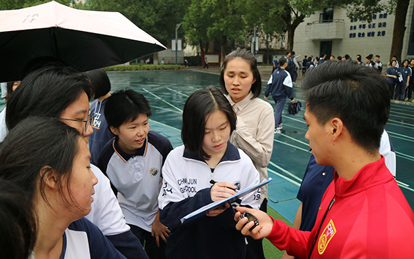 10月13日上午8点40,长郡中学高三年级体育学业水平考试在雨中拉开帷幕。