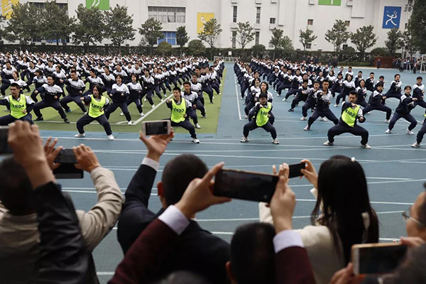 11月21日上午第二节课下课后进行了高二年级大课间活动展示,高二的学子跑操中气宇轩昂的身姿、嘹亮有力的口号震惊了所有师生,帅气威武的武术操更是让围观师生惊叹且着迷,舒缓悠扬的太极把热闹的人群瞬间带入沉静,学子们坚定不移的眼神散发出无限魅力,大家直呼没看够!