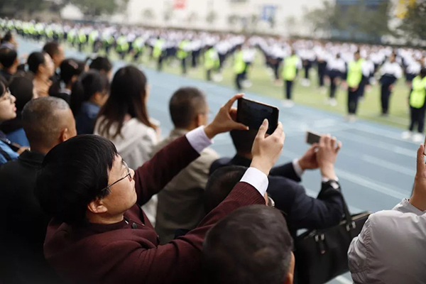 本次开放周大课间活动圆满成功,前来观看的老师给予了一致好评,围观老师们随手发的短视频在各类APP上疯传,单日点赞破10万,梨视频对此特意做了电话采访回应网友,在此感谢学校领导对新潮事物的?;ず驼芬欤颐遣煌跣牡耐币步欢洗葱?,争取每届学生每个学子都能从中受益。
