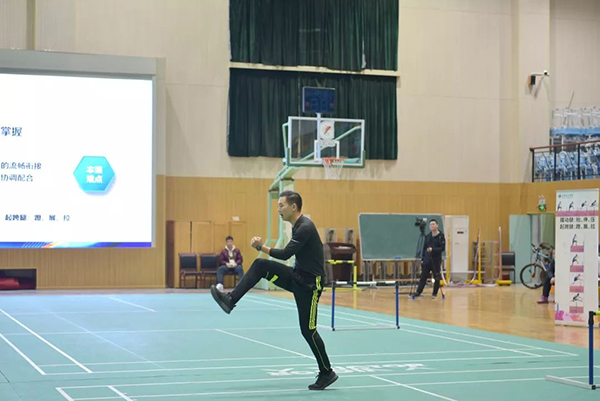 11月21日,在体育馆三楼,由来自长沙市长郡中学的李一品老师、长郡梅溪湖中学的毛博老师、长郡滨江中学张领领老师依次从不同的技术步骤,为大家呈现了三堂精彩纷呈的《跨栏跑》。