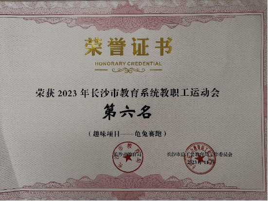 荣获长沙市教育系统教职工运动会(趣味项目—龟兔赛跑)第六名