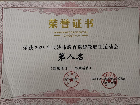 荣获长沙市教育系统教职工运动会(趣味项目—高效运转)第八名