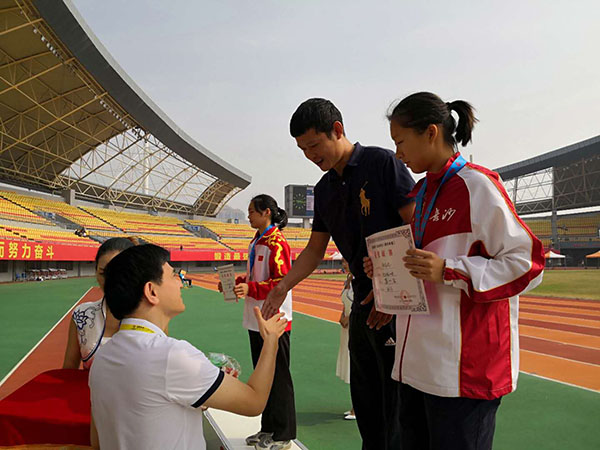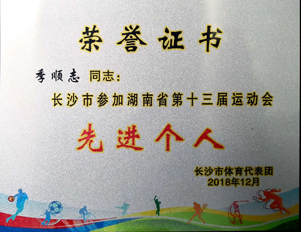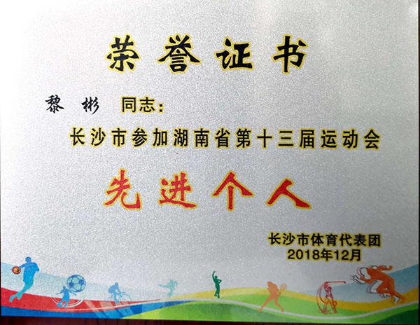 在今年8月至9月举行的湖南省第十三届运动会上,长沙市获得金牌总数、团体总分、体育道德风尚奖等多个全省第一,创造了我市参加省运会的历史最好成绩。我校在青少年组比赛中派出41人代表长沙市参赛,73人次共得金牌16.5枚,银牌17枚,铜牌15.5枚。为表彰先进,进一步激发体育工作者的工作热情,市人民政府研究决定,授予市体育局、市教育局“突出贡献奖单位”,授予市贺龙体育运动学校等31家单位“贡献奖单位”,73人获“先进个人”荣誉称号。我校被评为 “贡献奖”单位,黎彬副校长、季顺志老师被评为“先进个人”。