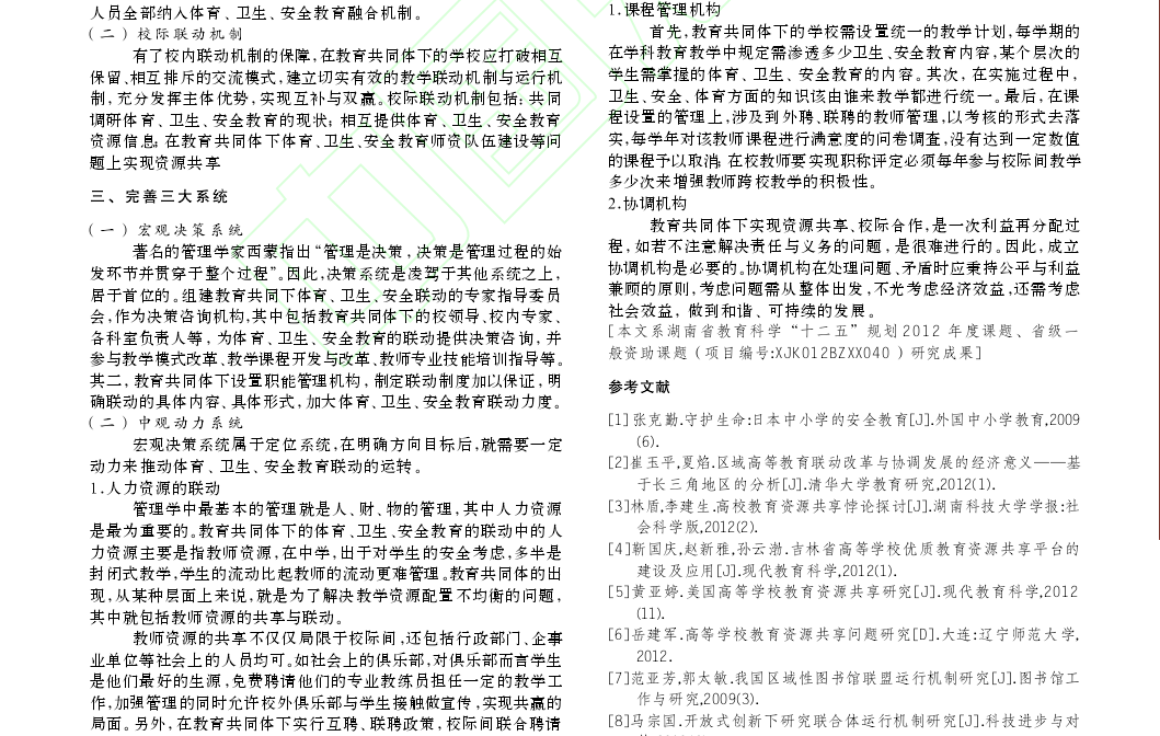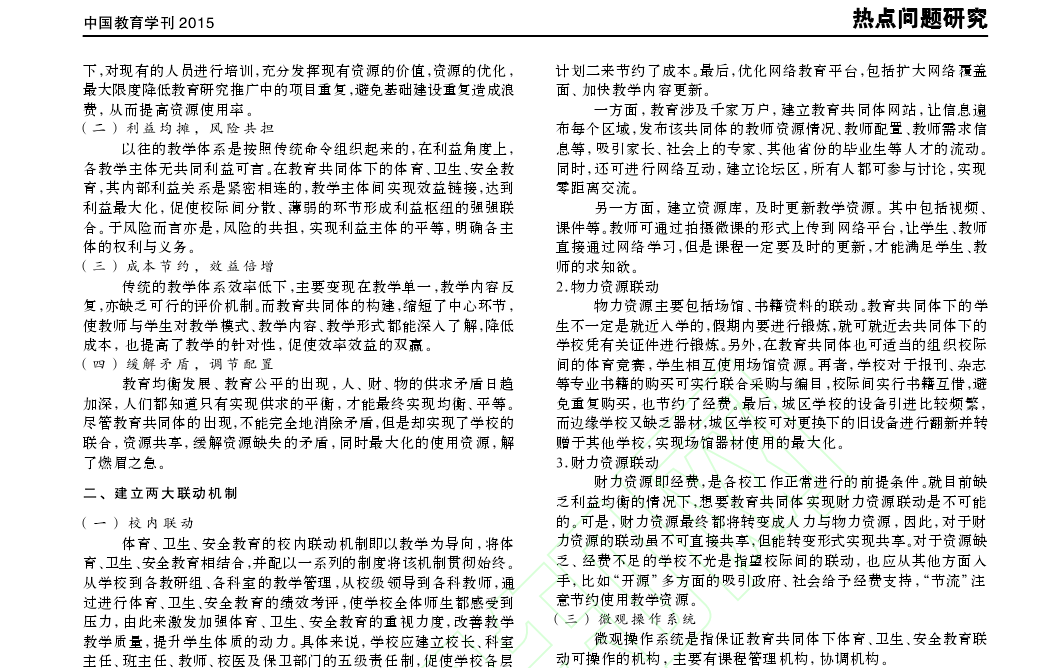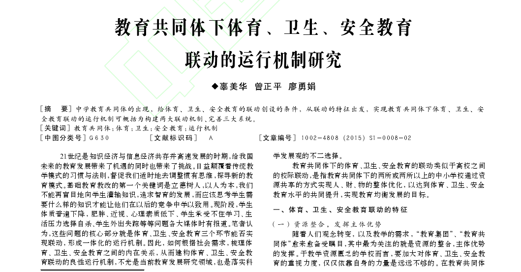 论文《教育共同体下体育、卫生、安全教育联动的运行机制研究》