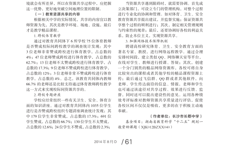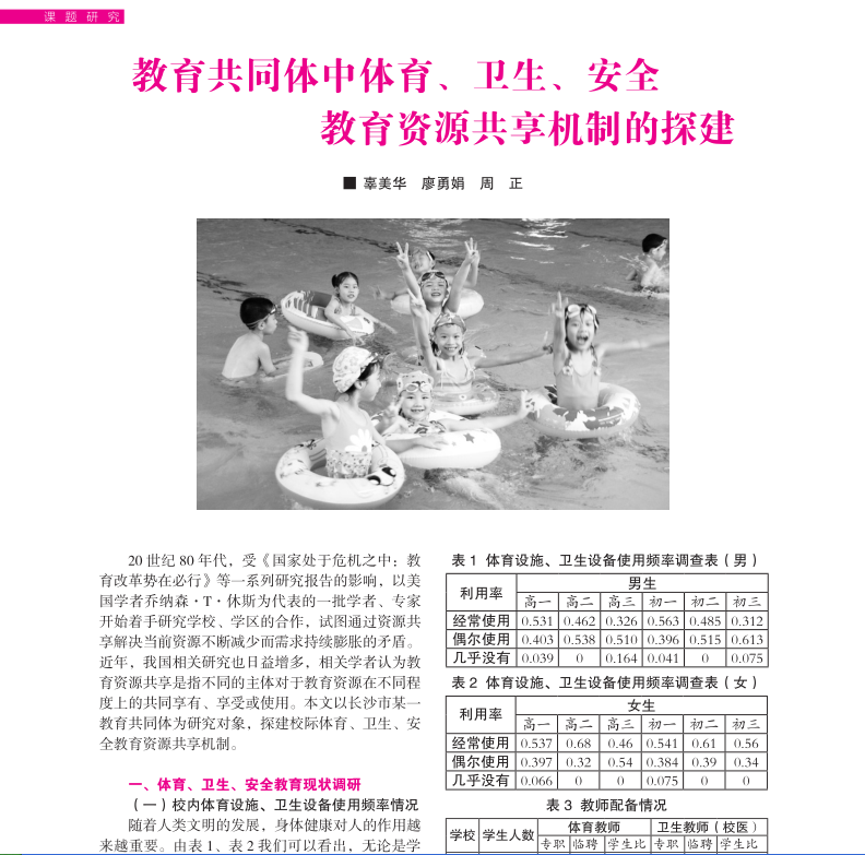 论文《教育共同体中体育、卫生、安全教育资源共享机制的探建》