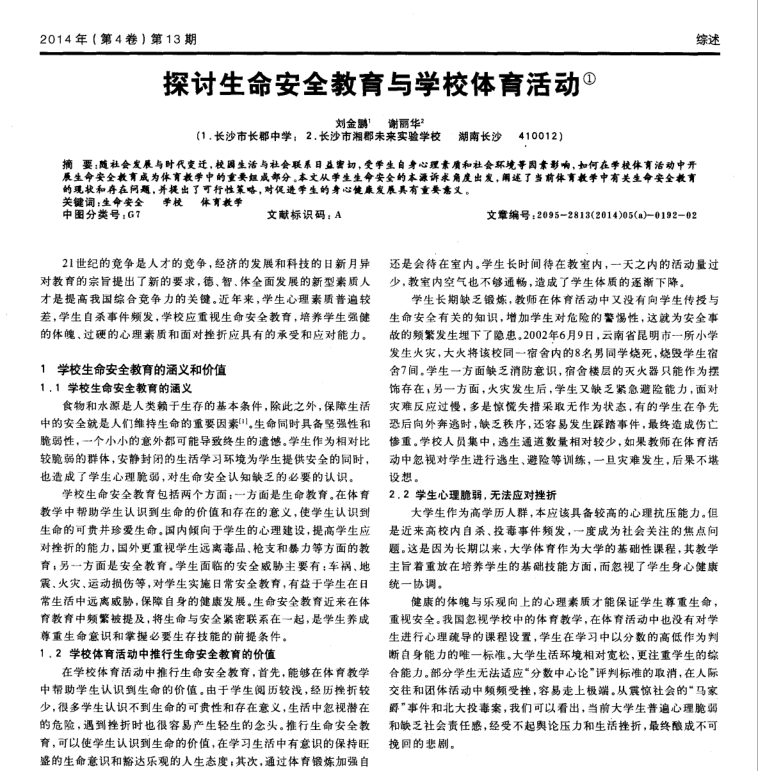 论文《探讨生命安全教育与学校体育活动》