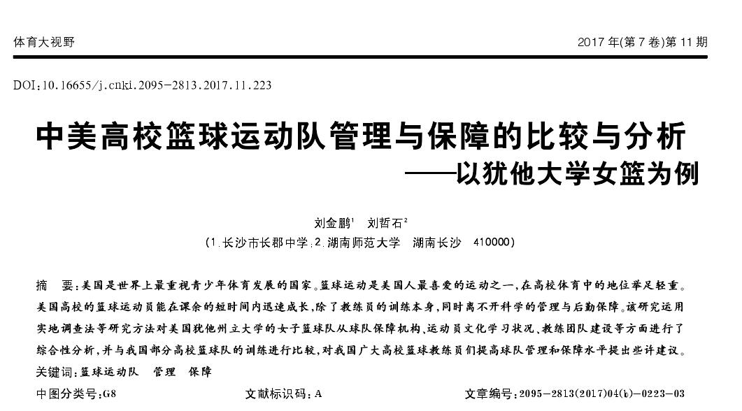 论文——中美高校篮球运动队管理与保障的比较与分析——以犹他大学女篮为例