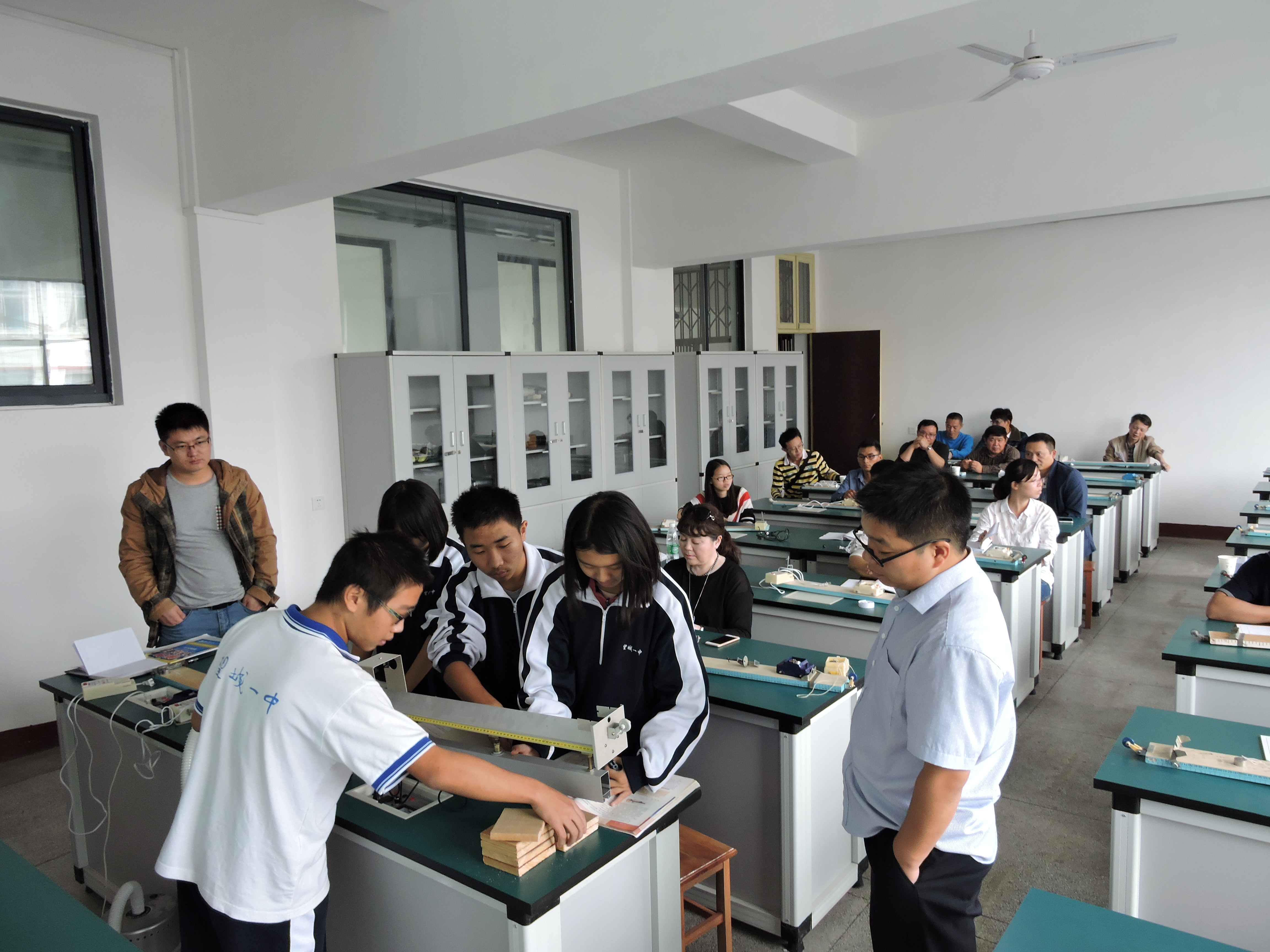 10月18日上午,长郡中学高一物理组在教科室骆宪武主任的带领下,赶赴望城一中,共同举办了一场物理教研活动。该活动得到了望城一中领导们的热情接待和精心布置。长郡中学的老师们首先参观了望城一中的校园和课间操,接着,上午第2节和第3节,望城一中两位年轻老师分别以《力的合成》和《探究加速度与力的关系》为课题,为大家呈现了两堂精彩的物理课堂。听完课后,两校的物理老师在会议室举行了评课活动,评课活动由望城一中教科室黄主任主持,活动中,两位上课老师首先阐述了自己的课程设计和理念,长郡中学李龙军老师和王群老师对两堂课进行了全方位的点评,并结合自己多年的经验,给两位上课老师给出了很多很好的建议,两位上课老师均感觉收获良多。