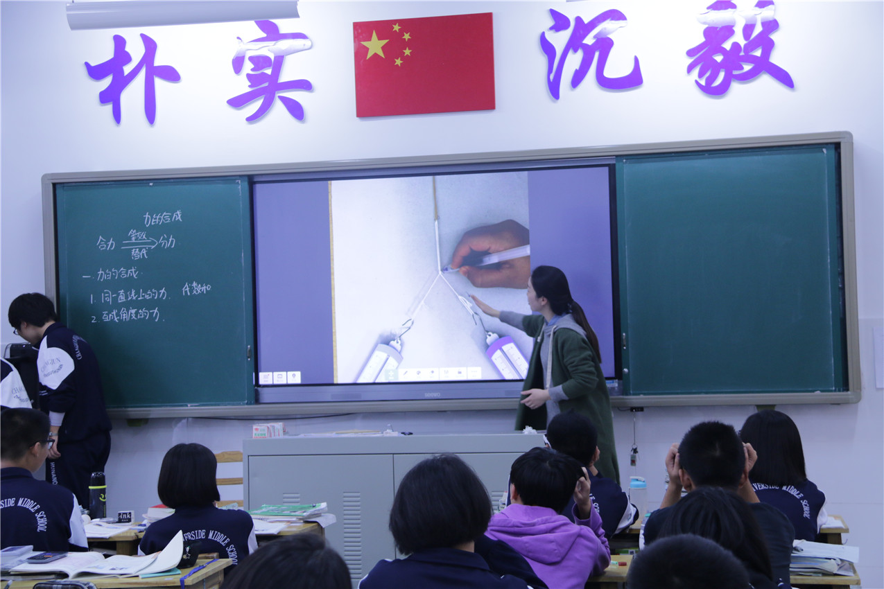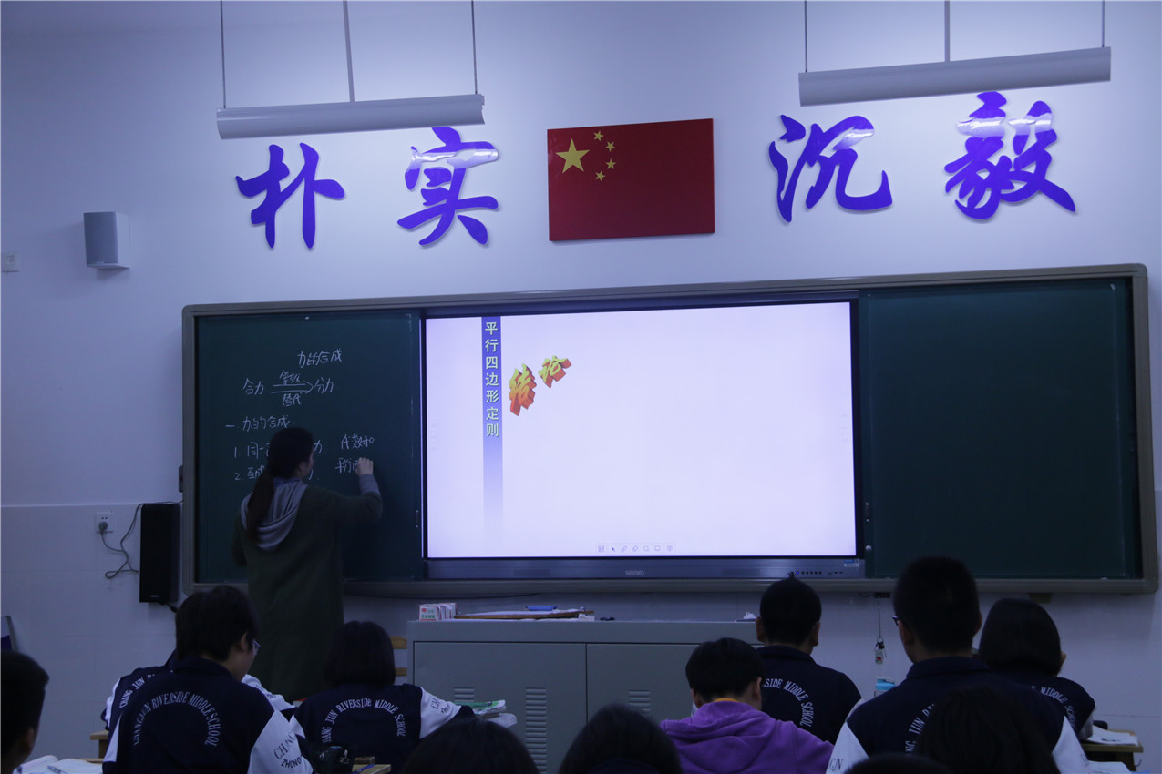 10月27日下午,长郡中学高一物理备课组在李龙军老师的带领下,赶赴长郡滨江中学,与长郡滨江的同仁们联合开展了一场物理教研活动,该活动得到了长郡滨江领导和老师们的热情接待和大力支持,长郡滨江校长助理李建刚老师和两校高一物理备课组老师共同参加了此次教研活动。长郡滨江中学的李赟老师以《力的合成》为课题,给大家展现了一趟精彩的示范课??翁弥校钰S老师精心设计课堂,对学生循循善诱,步步引导学生得出结论,使得整堂课大放异彩,取得了很好的教学效果,课堂中充满了欢声笑语,气氛活跃??魏螅叫8咭晃锢肀缚巫榻辛似揽位疃?。大家纷纷表示,李赟老师教态优美,话语亲切,很有感染力,课堂结构完整合理,重难点突出,又结合了信息技术的特点,设计上有创新有亮点。最后,长郡本部高一物理备课组长李龙军老师作了总结发言,他从规范、到位和创新三个方面对年轻老师提出了要求,希望集团内青年教师能够迅速成长起来。