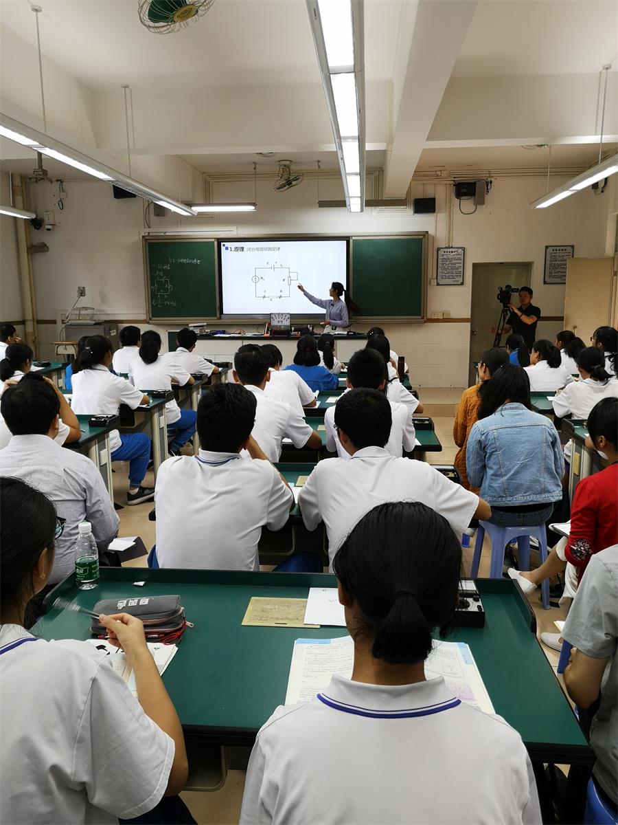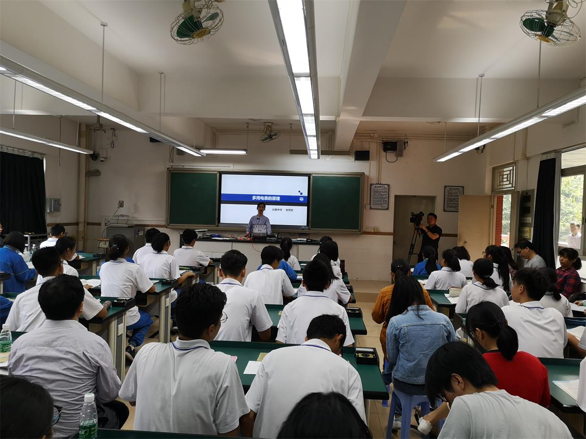 广州市教育研究院物理教研员陈信余老师点评这堂课是“老师心中有学生,层层深入,发人深省”,围绕学生展开课堂,是启发式教学而不是传授式,同时,关于多用电表的原理讲得非常地清晰到位,讲完原理之后再通过现场改装将原理细化,改装的实验环节充分调动了学生的积极性,让学生对欧姆表的改装过程有了更深刻的体会,更有真实感,帮助学生进一步认识原理,提问很有价值,启发性很强,或者能回顾之前的知识。