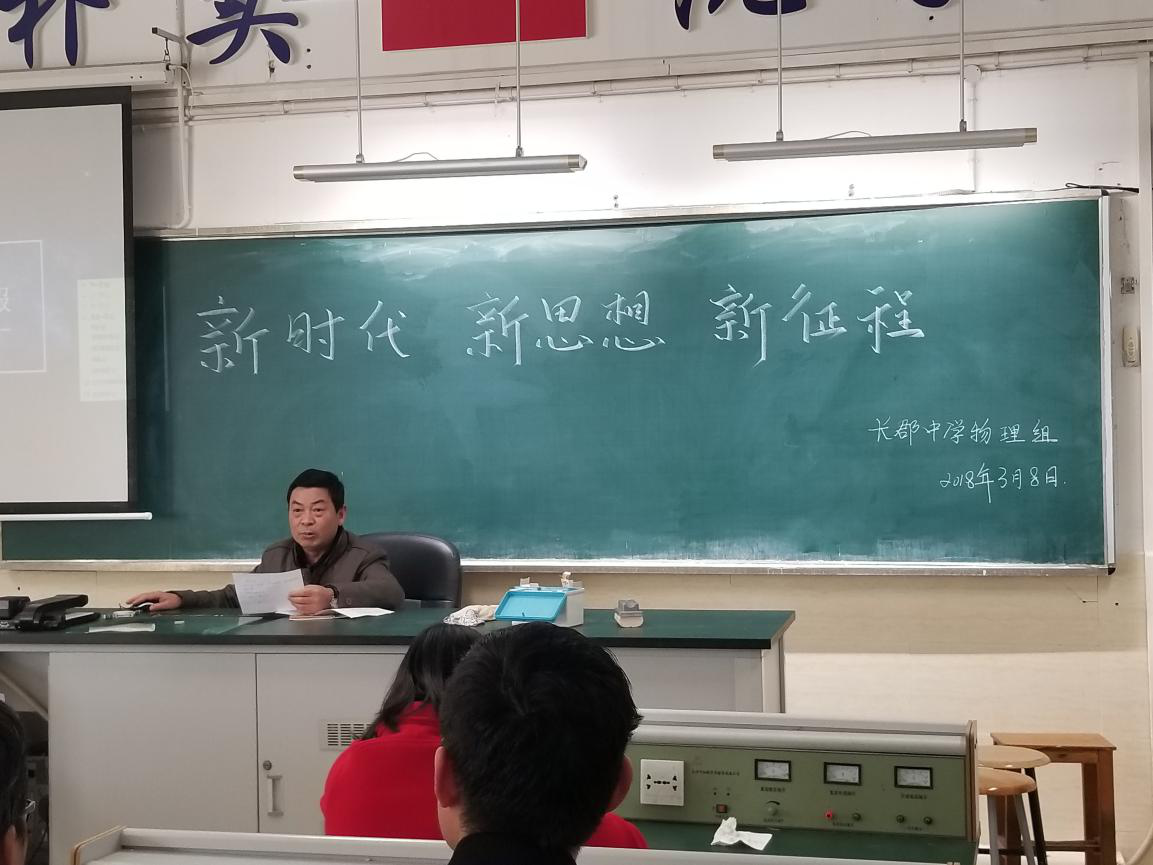 2018年3月8日,长郡中学物理组在科技楼三楼召开以“新时代、新思想、新征程”为主题的教研组活动?;疃形锢斫萄凶槌れ璞祭鲜Χ?/span>2017年物理组所开展的活动以及在各项活动所获得的成绩和荣誉进行了总结。主要包括以下几个方面: