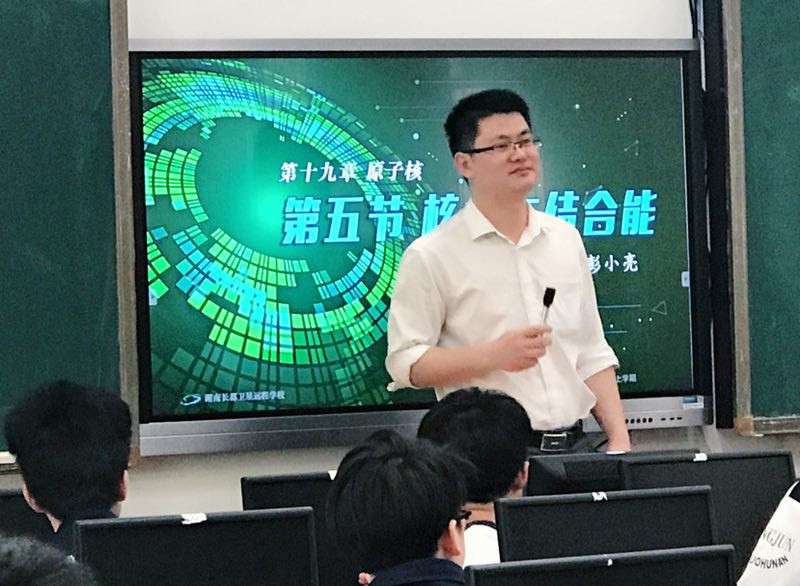 彭小亮老师所选课题是《结合能》,这是一个非常冷门的教学课题。也是一个非常难以理解的前沿知识。结合能是人们认知核能的基础。是从宏观世界到微观世界过度的必经之路。但是由于对前沿知识体系认知的匮乏,导致学生对结合能难以理解。彭老师用类比的方法,将学生比喻为一个个的核子,对结合能的概念以及比结合能的变化做出了非常形象直观的展示。虽然是一堂近似难以接受的课程,但是却让每一个学生丝毫没有感受到理论知识所带来的疲惫感,仿佛进入和微观世界,看到了一个个的核子世界。