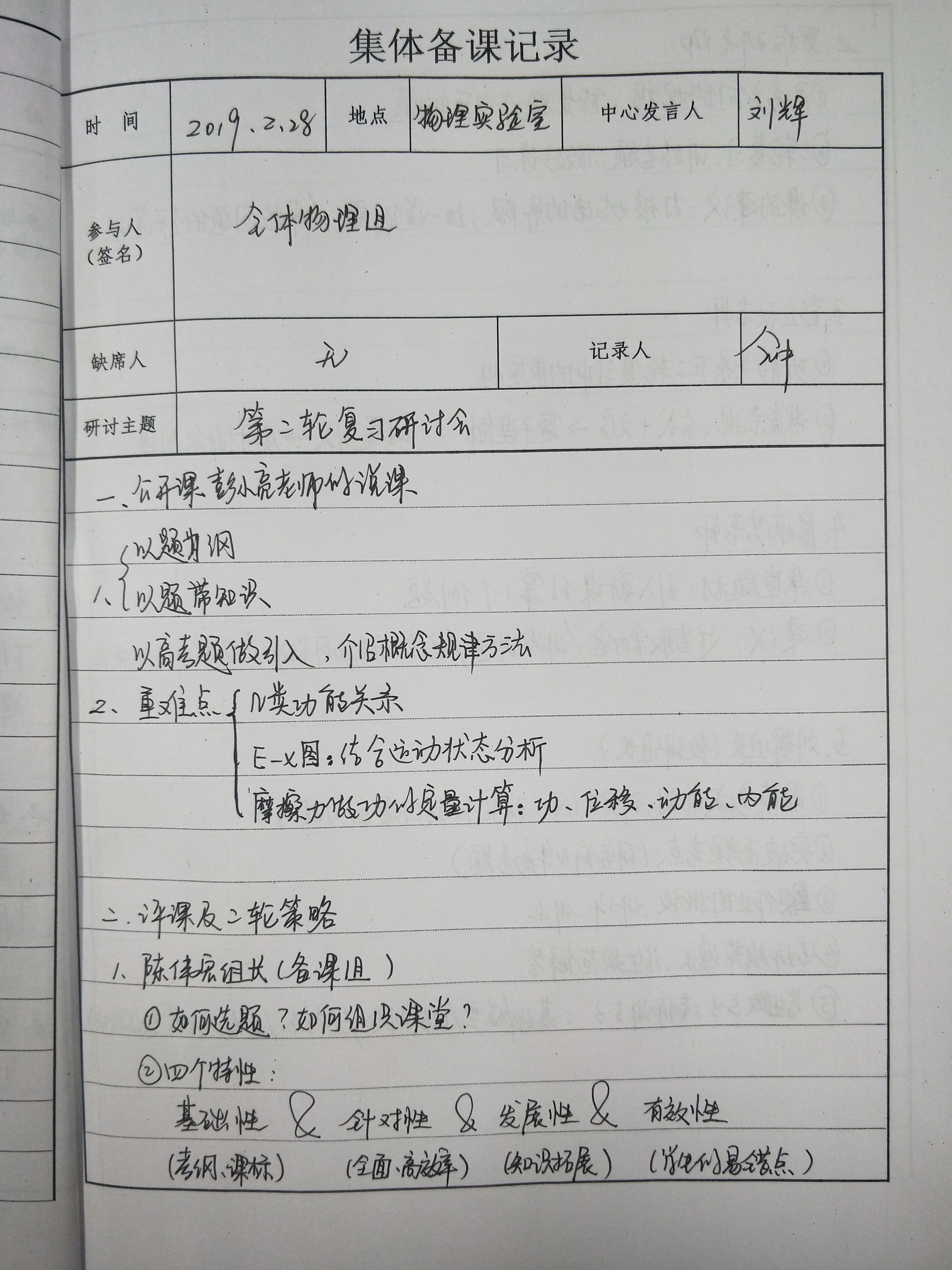 【物理】2019年上学期物理组二轮复习研讨会记录