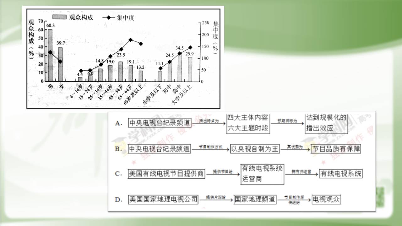 还是回到全国1卷的实用类文本阅读题上来,材料中的图表(第一幅图)要求考生由图表转换为文字,试题选项(第二幅图)却是将文字转换为图表,这一切还是在文本阅读的背景下进行的,难度是不是增加了?区分度是不是加大了?面对这样的试题,考生如果是只会“纸上谈兵”的赵括,就难免不会败走麦城了。不是说要提高区分度吗,怎么提高,增加知识点?不可能!将知识点关联,把知识点打乱,高水平的学生才能乱中取胜。所以我们说,加大区分度的预期,强化了知识点的必然关联。