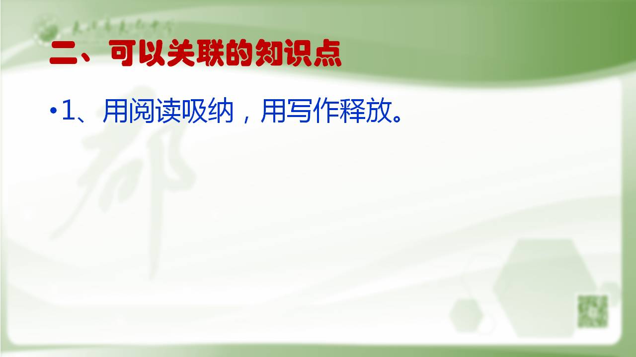 (一)用阅读吸纳,用写作释放。