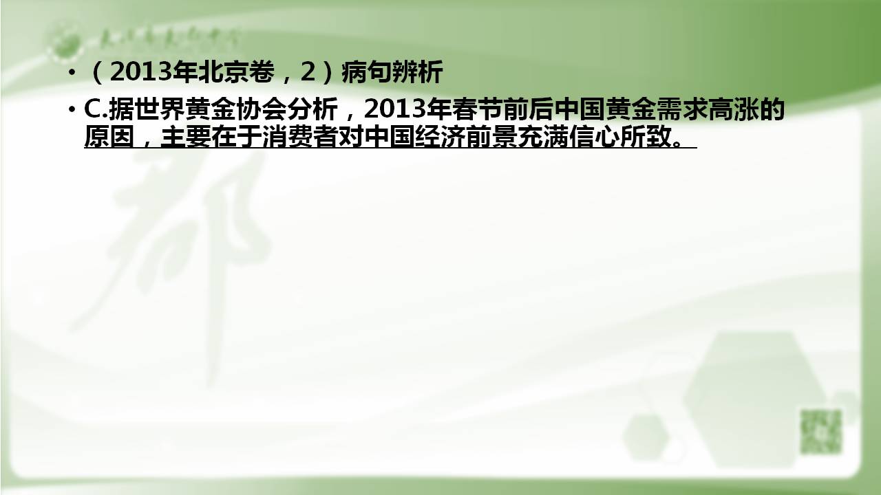 (2013年北京卷,2)病句辨析