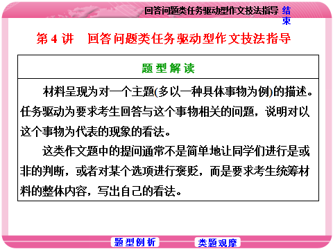 秦洁老师的高考作文讲座,为高三学生传经送宝、答疑解惑,师生互动频繁,现场气氛十分活跃。秦洁老师的高考作文讲座主要针对高考二轮复习的作文指导训练,从立意高、结构巧和语言美三个方面美化提升,明确二轮作文复习的备考方向。秦洁老师重点讲解了高考四类任务驱动型作文写作技法,任务驱动型作文因材料不同、任务不同,在写作中各有区别,因此就“组合延伸类”(2017年全国卷Ⅰ和卷Ⅱ)、“权衡与选择类”(2016年全国卷Ⅱ)、“看法与评价类”(2015年全国卷Ⅰ)、“回答问题类”4类任务驱动型作文分别进行写作指导。