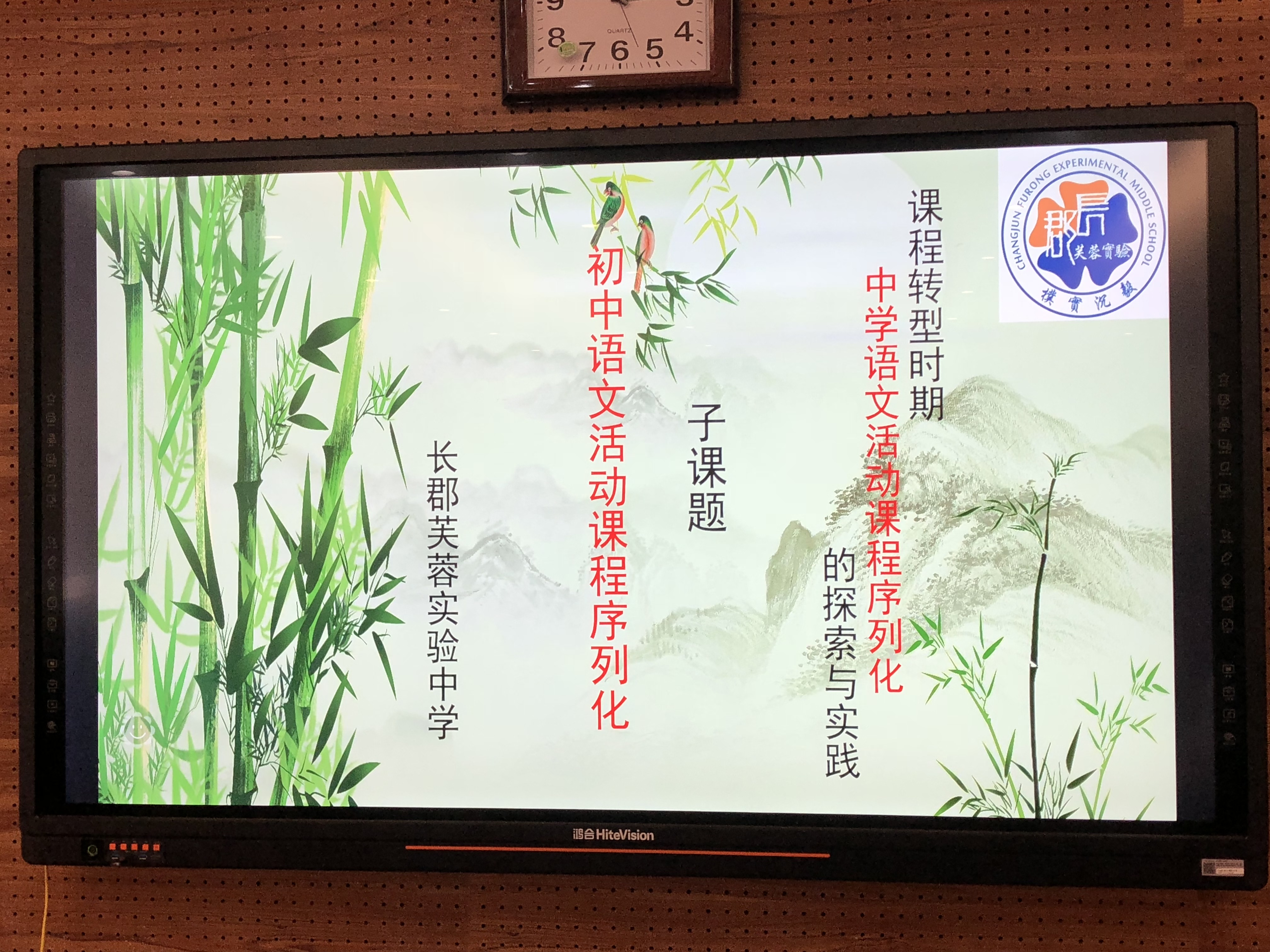 5月17日,我校语文课题组成员皮访贫老师、肖杨老师、林颖慧老师赴长郡芙蓉实验观摩语文活动课。作为省级课题《课程转型时期中学语文活动课程序列化的探索与实践》的主持者,肖老师一行主要了解了子课题——《初中语文活动课程序列化》的开展情况。长郡芙蓉实验中学吴晓峰校长、王旭副校长及学校部分老师现场观摩学习。