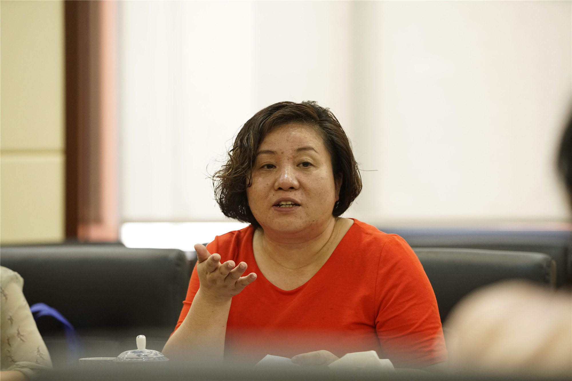 课后在谅实厅评课,由初二年级语文备课组组长曹佳老师主持。