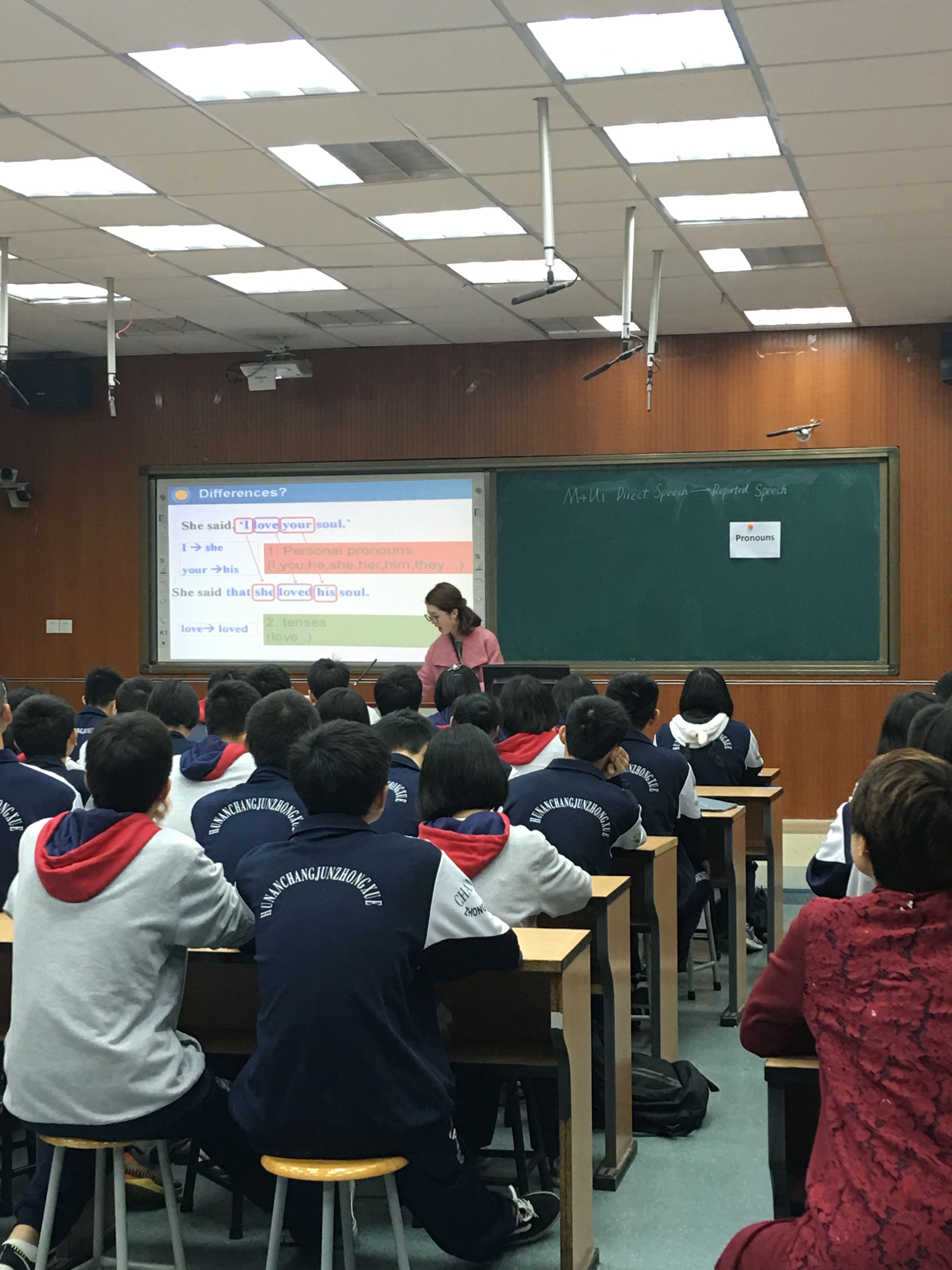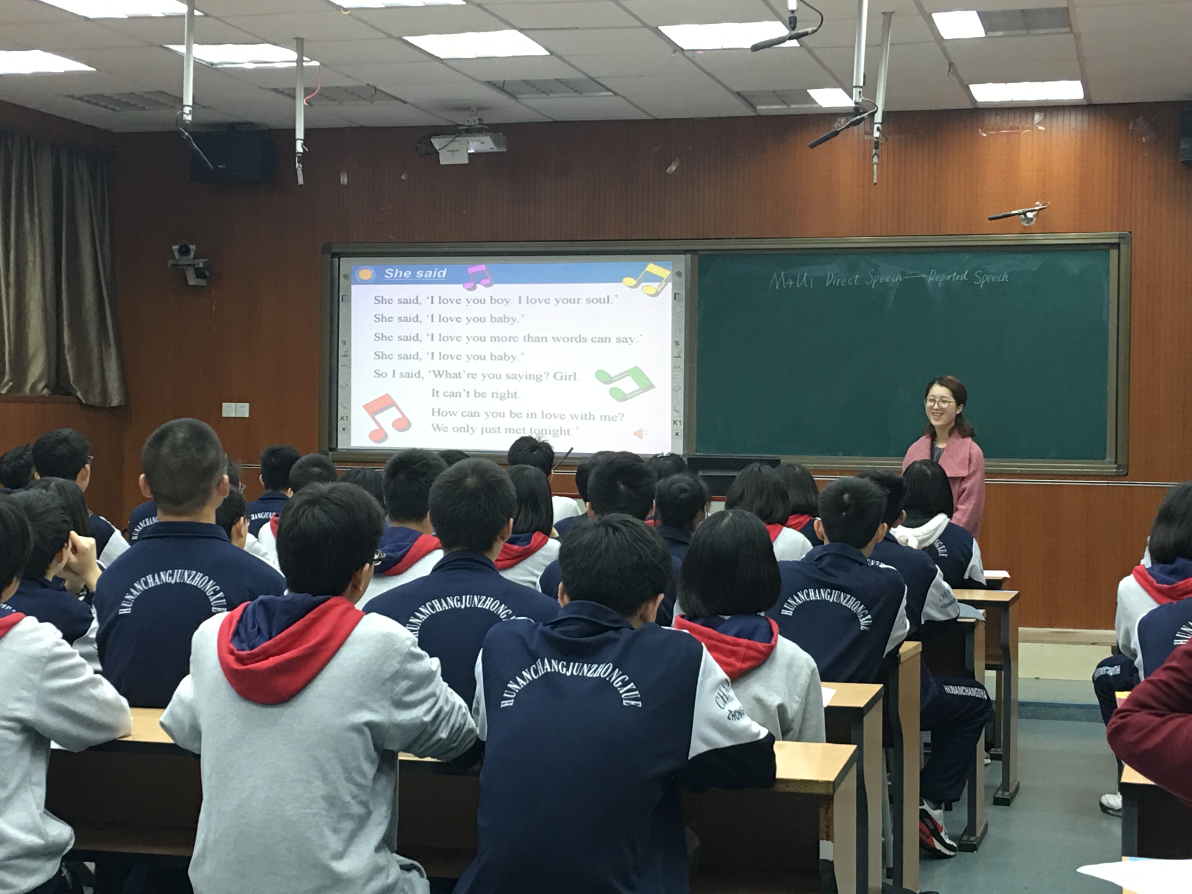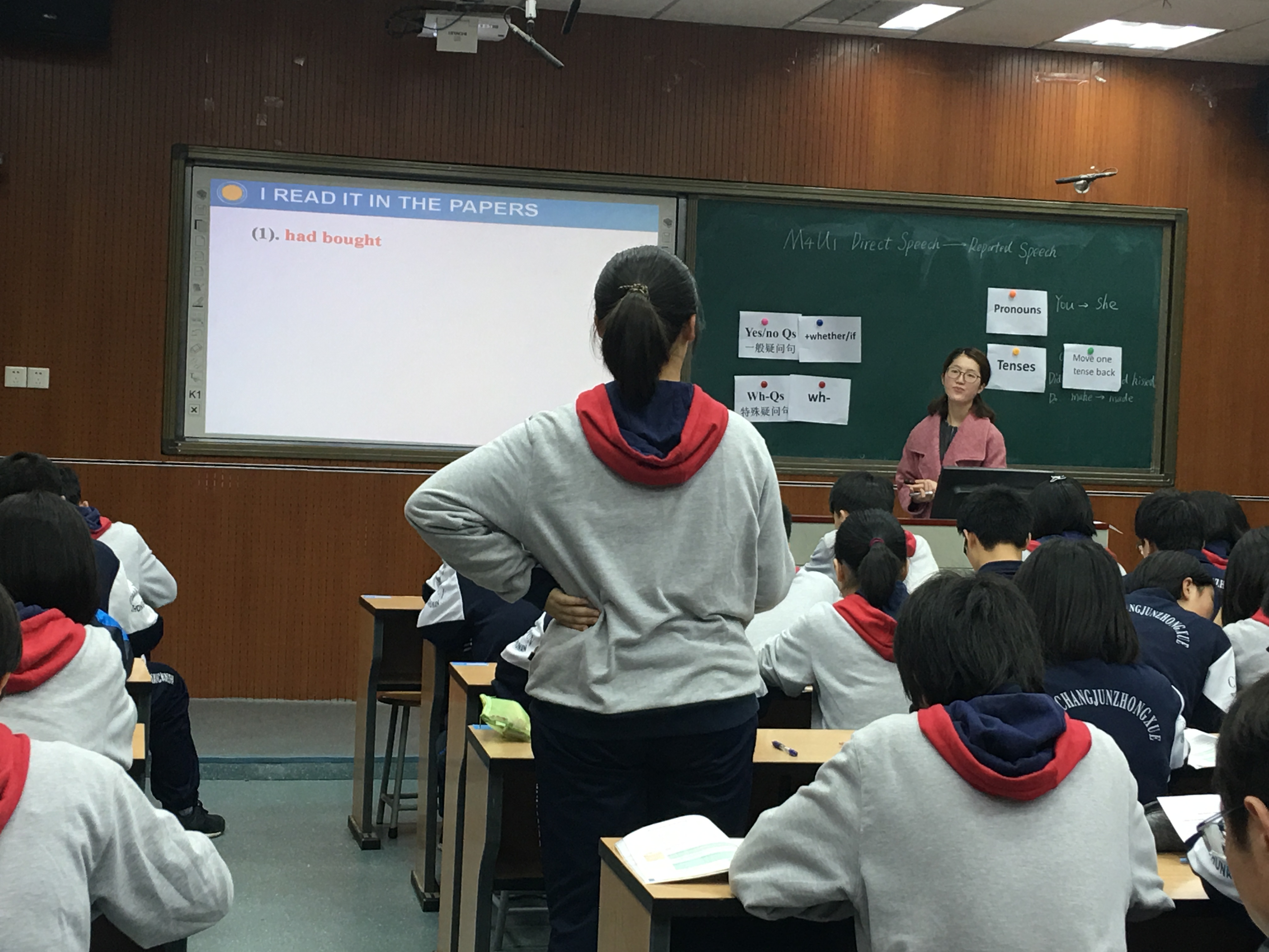 2017年4月6日上午第一节课,长郡中学高一备课组在科技馆二楼录播室开展了一次备课活动。高一年级青年教师陈珍老师执教了???的1单元语法---直接引语和间接引语。