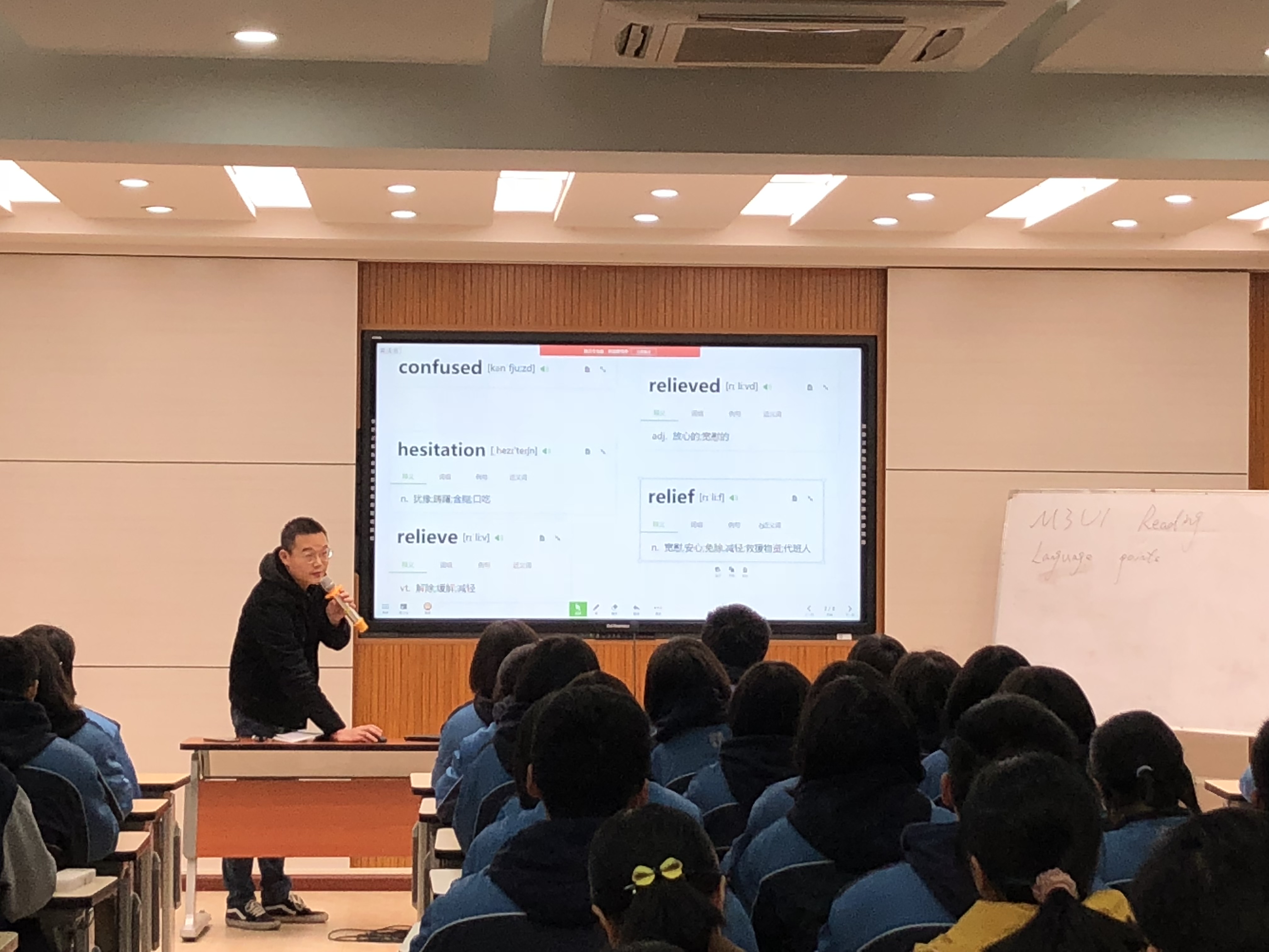12月18日下午在办公室四楼多媒体教室,高一备课组李东东老师精心准备了一堂组内公开课,三??橐坏ピ猂eading for writing。 教学目标是根据课文文本,设计当主人公深夜下班 followed by a stranger的情境,让学生自己选择在此情景下可能的对应的方式以及可能的结局,最后运用本单元核心词汇复述自己的故事内容以及结局。