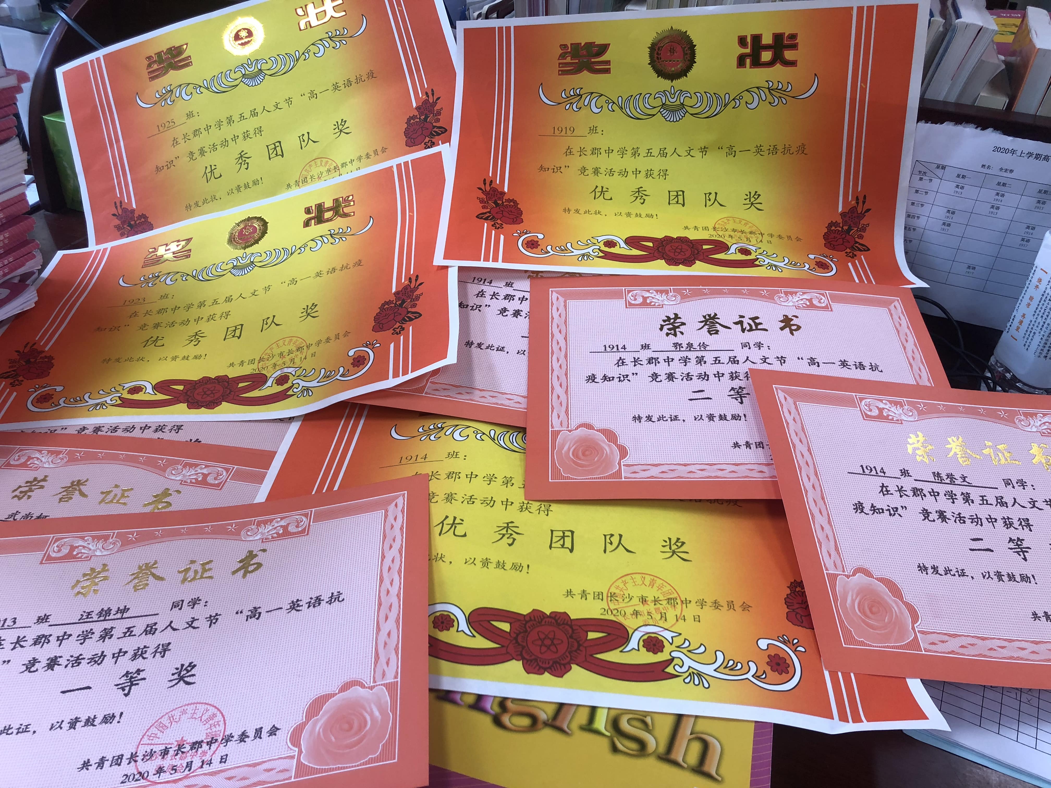 通过这一次竞赛,不仅从英文和多元的视角来了解了这一公共卫生事件,同时也积累了更多的关于新冠疫情的细分主题篇章和相应主题词汇,达到了取材于生活和社会,学习融入生活和社会的学习目标。经过激烈的角逐和严格的评选,1901, 1902, 1906, 1907, 1909, 1914, 1919, 1923, 1925荣获优秀团队奖。同时也根据得分,评了一二三等奖,并张榜公布表扬,并颁发荣誉证书。