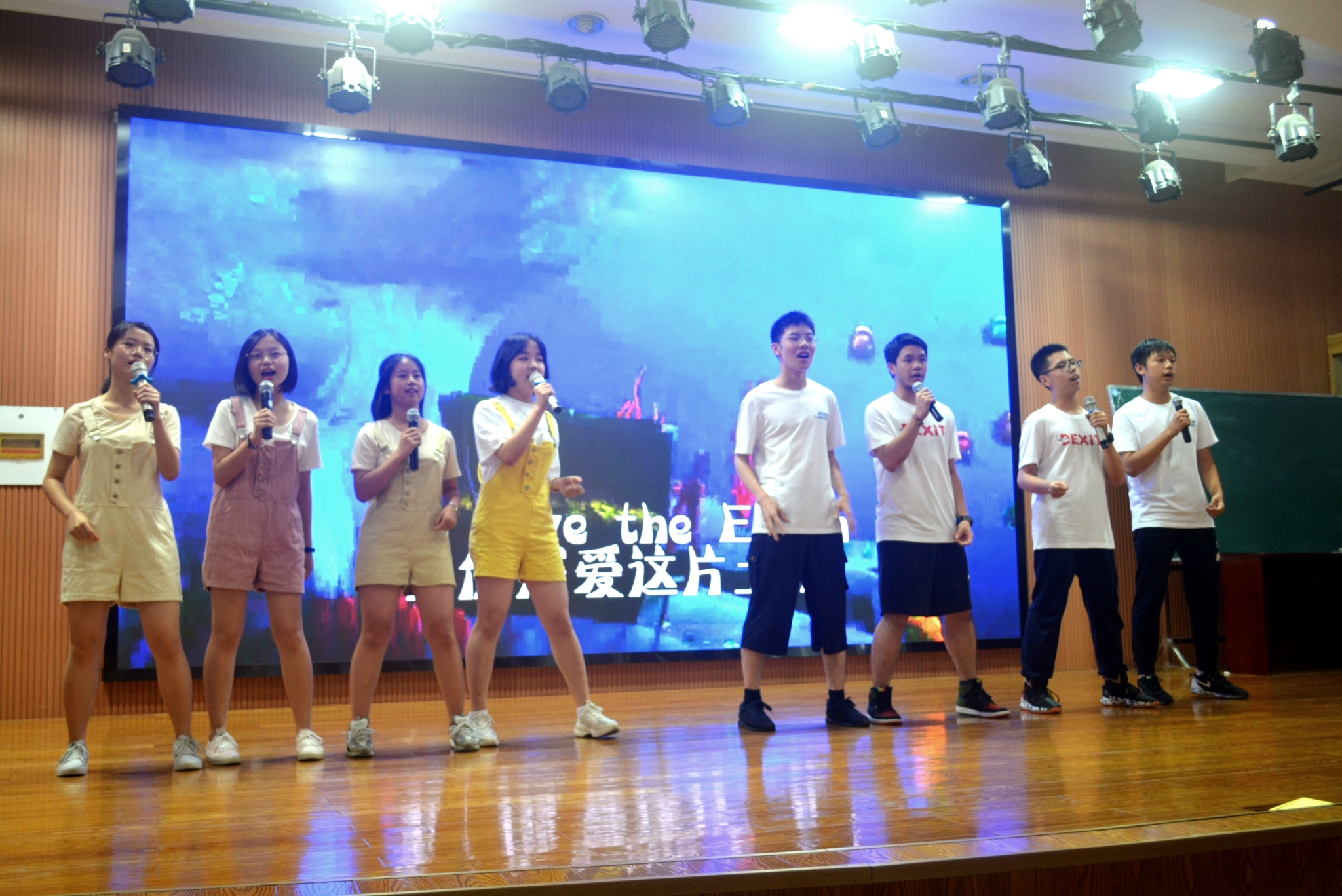 1806班易锦豪、李鹏辉、陈博凡、彭程、周承熙、李煦旸、谭雯琦、段婷婷、全嗣颖、付梓垚带来歌曲《Earth,our common dream》,风格清新,演唱中加入rap极具新意。最后的一段独白呼吁大家?;さ厍?,为表演又增加了深意。