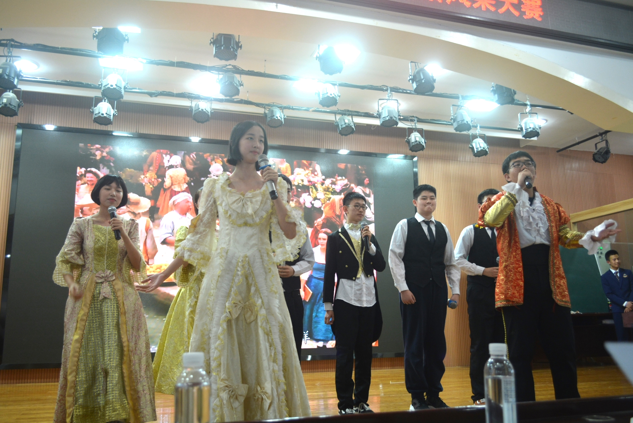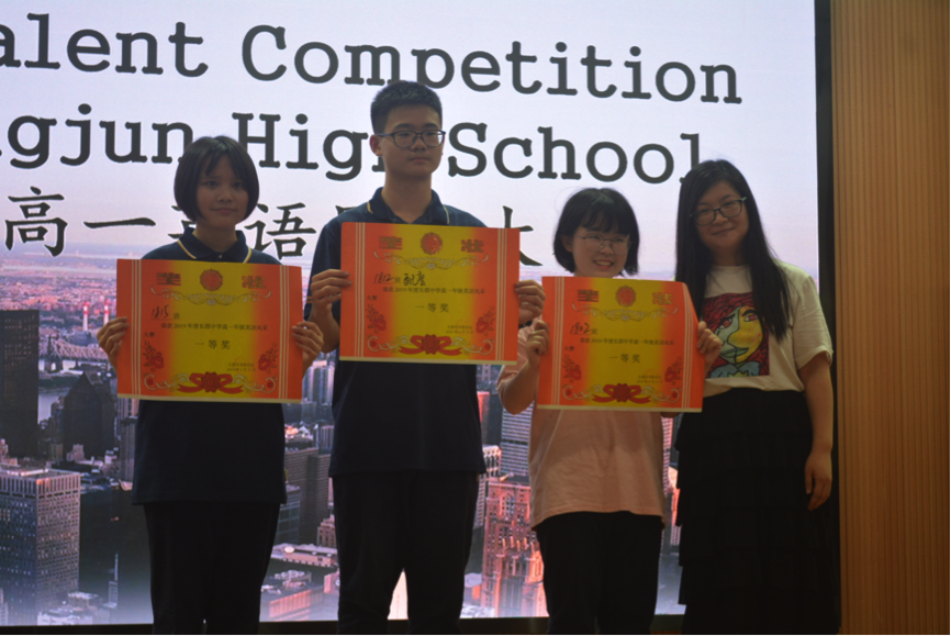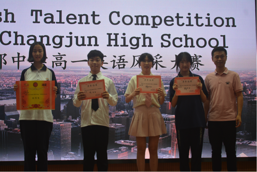 评委老师与观众落座完毕后,四名主持人代爃榤、唐艺庭、黄彦翔、聂晨晨用标准流利的英语宣布高一年级英语风采大赛决赛开始。