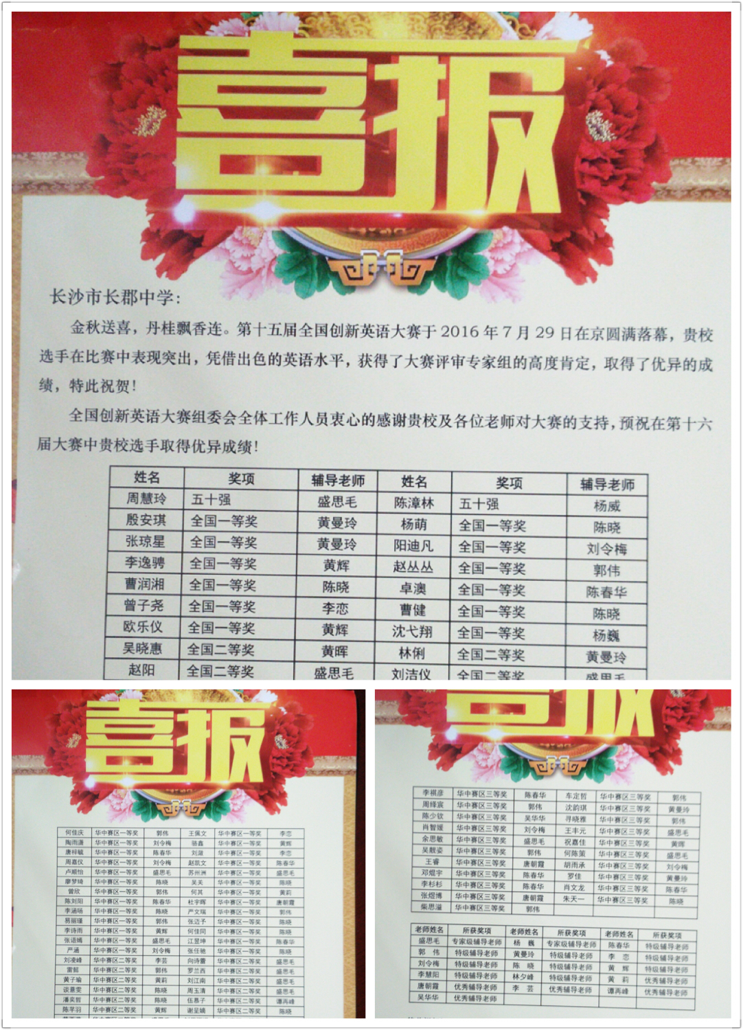 长郡中学英语教研组始终自觉推进高中英语教学改革,重视语言基础,多方位培养学生的综合语言运用能力和综合语言素养。这与创新英语大赛的宗旨不谋而合。我校在做好大赛事宜的同时,也会以此为契机,不断深化发展我校的外语教学,尽显我校学子的外语特长和国际视野,不断提升我校学子英语素养。