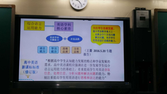 接着,陈老师对英语学科的核心素养进行了提炼,指出核心素养下,学生和教师都有了对应的新要求。教师应当善于积累教学资源,实现教材内容知识性,思想性和趣味性的结合,实施创新的教学设计。学生应当理解和认同中外优秀文化,积极运用并主动调试英语学习策略,具有逻辑性,批判性和发散性思维。大会总结前,陈老师要求老师们思考如下问题:学科核心素养下的长郡英语课程应当如何设置?教师自身发展和英语课堂教学实施将发生怎样的变化?教师们积极性颇高,也表示受益匪浅。