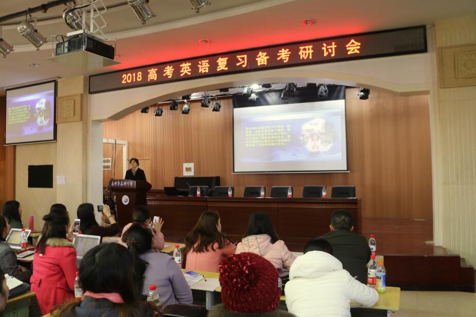 接着,长郡中学高三备课组长黄辉老师主要从命题研究和备考建议两个方面进行发言。核心思想为心中有大纲,精研高考题,广泛阅读谨记心。词汇方面,要树立以考纲词汇为核心的总复习理念,将考纲词汇的过关贯穿整个复习过程;阅读理解是一个综合的过程,提高阅读理解能力也是一个漫长的过程。而对英语学习者来说拥有的背景知识越多,对文章的理解速度也就越快,随之准确率也会提高。因此,英语学习者应在努力掌握语言知识的同时,力求多了解和扩展各方面的知识;作文方面,首轮复习侧重于话题素材和好词好句积累,而二轮复习更应该关注书信格式和应试作文训练。语法方面,教师将近四年高考题语法填空题和近八年的短文改错题做一遍,然后进行归类。以便了解高考究竟考什么,是怎么考的。让复习避免盲目性,更有针对性,有效提高复习效率。两位备课组长的发言为在座的英语老师在高考的摸索中指明了方向。