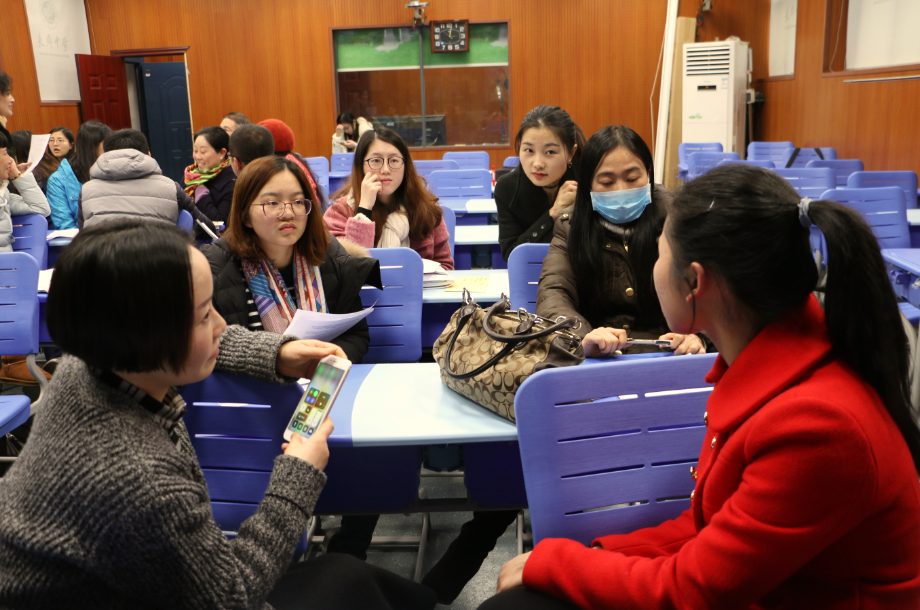 1月17日下午,英语教研组在科技馆二楼录播室开展了本学期英语教研组的最后一次教研活动?;疃聘呷昙读窒Ψ淅鲜Φ难刑挚慰沽丝翁馕盎谒嘉纪己痛士槔砺鄣母呷宦钟镅灾陡聪疤骄俊钡墓刑挚巍4舜喂斡筛呷昙队⒂锉缚巫榫咛甯涸?,体现了思维导图、词块理论等教学理论。林老师的课堂生动活泼,师生互动频繁,课堂指导语精炼清晰,环节流畅自然,得到了老师们的一致好评。林老师在课堂上充分借助现代教育技术辅助课堂教学,使学生的课堂产出能直接快速地呈现在大屏幕上供大家一起讨论欣赏,这无疑提高了课堂效率和学生的积极性,给现场的老师们做了一个很好的学习示范。