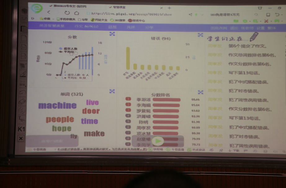 评课后,批改网的喻鹏老师给高一高二的老师们展示了智慧课堂平台的运用,大家受益匪浅。近年来,英语教研组积极组织教学研讨课,本期以“词块教学和思维导图”为主题持续进行深入地跟踪研讨,使全体教师对高效课堂和学生核心素养培育有了更进一步的思考。同时也借此为青年教师搭建锻炼平台,通过承担公开课、研讨课等“压担子”途径促进他们迅速成长。此外,教研组还积极借助信息技术提高课堂教学效率。2017年上期,英语教研组成功举办“基于核心素养和大数据的中学英语创新课堂”论坛,向全市英语教师展示了基于批改网的英语写作教学研究课。暑假期间,英语教研组长陈春华老师还受邀在第二届信息时代的中小学教学研讨会上作专题发言,充分展现了我校英语教研组近年来对于核心素养和信息化的背景下英语教学的改革、探索和实践。
