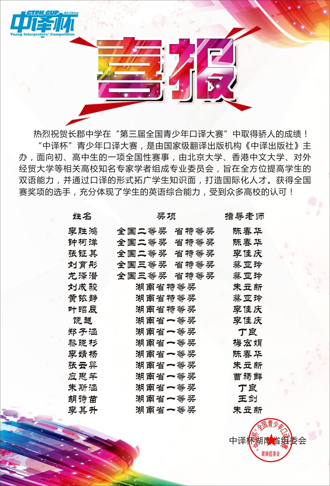 长郡中学在“第三届全国青少年口译大赛”中取得骄人的成绩