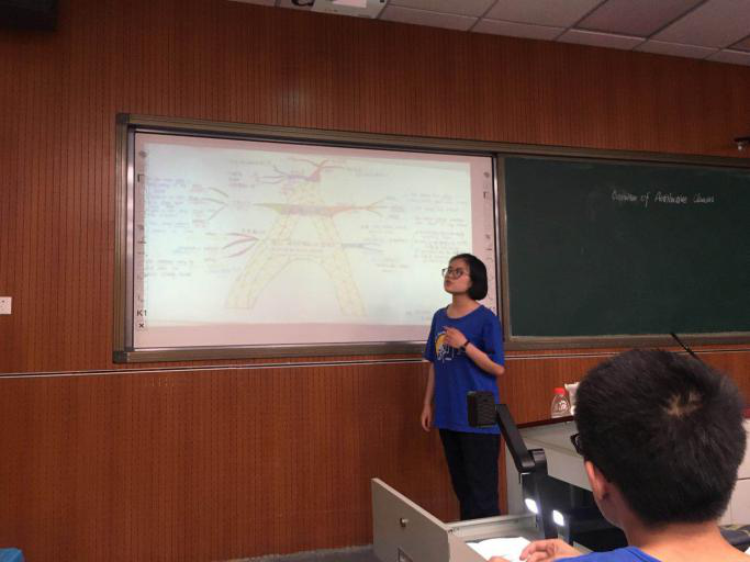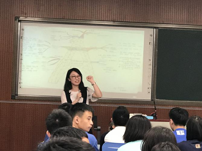 课后,龚倩倩老师进行详细的说课,要点为:1. 借用思维导图引导学生自主复习。2. 以高考易错点为媒介进行练习,让学生知道容易失分的地点。3. 从列提纲到写作产出,实现从句子到篇章的运用。接着广州执信中学老师点评:1. 导入用英文歌曲能够引起学生兴趣。2. 用Mind-map构建语法点的理解很有创意。3. 用心收集高考试题,图片很用心。4. 语法教学从structure 到meaning,体现了语法教学的科学方法。5. 教学过程中学生合作学习,产出效果非常好。也提出宝贵的建议:1.学生在写作完成之后有教师投影出来。2.学生作文中出现的语法错误由教师指出并指导修改。这样显得严谨。3.建议学生进行分段写作,汇总成篇。