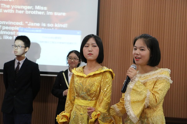 Pride and Prejudice这部具有强烈戏剧冲突的小说被1706班和1709班演绎得有声有色,与众不同的舞台风格,细致而饱满的英文台词,将这部小说勾勒得淋漓尽致。