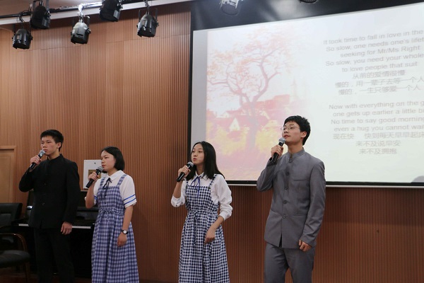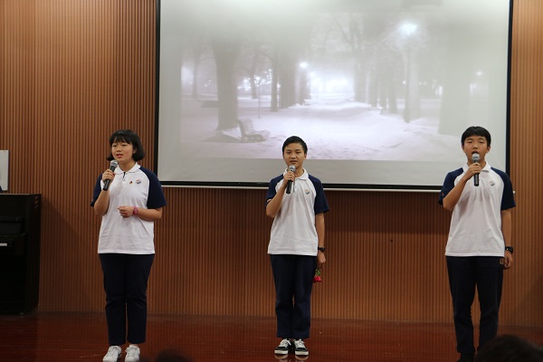 The furthest distance in the world,这首缠绵而悲伤的诗歌在1710班几欲垂泪、颤抖的生动朗诵下感染了在场的所有听众。而后半部分朗诵的罗伯特·彭斯的A red red rose显得炽热而富有表现力,两首诗歌似冰与火碰撞得如此惊艳。