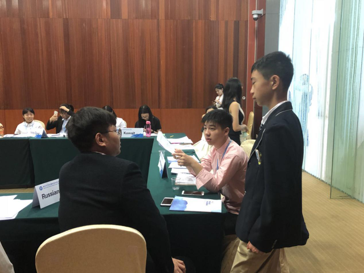 紧接着,是随之而来的两天四场的紧凑会议。各个会场,每位学生代表都展现着独有的风采。用睿智精彩的语言,清晰的逻辑以及坚定地立场态度让全场听到他们的声音,无论何时走进会场,你都能看到他们,或在激情澎湃地与其他代表磋商,或认真细致地写着工作文件,或侃侃而谈表达本国立场。1608的曹吉日同学和1710的李胜鸿同学在UNSC一展巾帼英雄,谦谦君子之风。1620的谢祚同学和1711班的史羿同学在联合国经济和社会理事会代表中国致力于解决叙利亚难民问题,尽显大国风范。1621的黄子涵同学和1620的赵希雅同学在联合国人权理事会上为弱者发声,铿锵有力。还有太多太多的精彩瞬间,难以尽述。