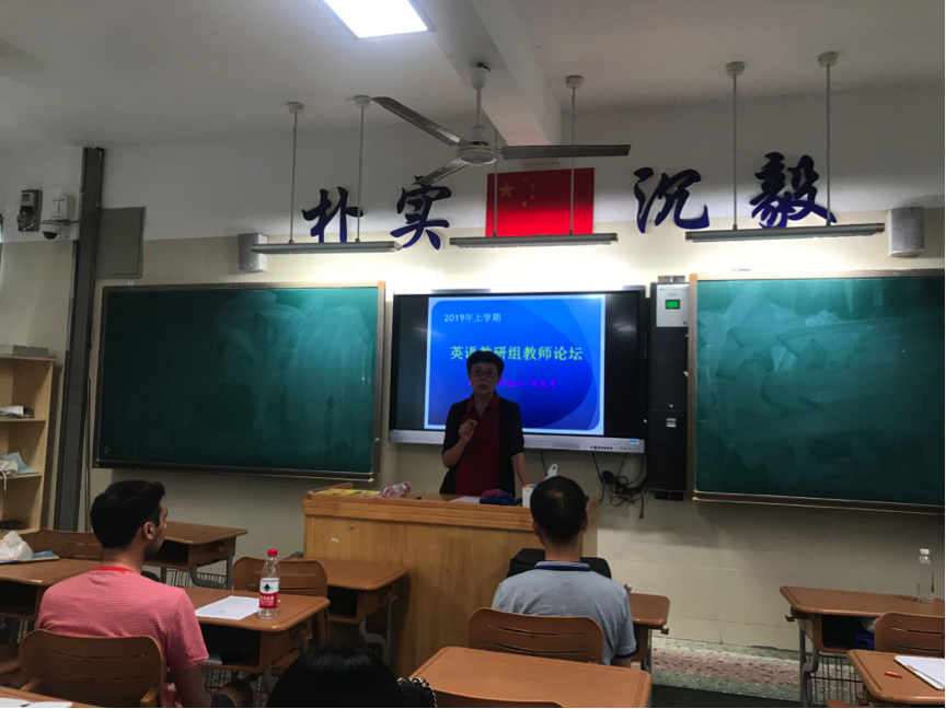 2019年8月31日下午,长郡中学英语教研组教研论坛在二教学楼1915班教室拉开帷幕。英语组全体教师积极参加,英语教研组长杨巍老师主持论坛,李素洁校长莅临指导。