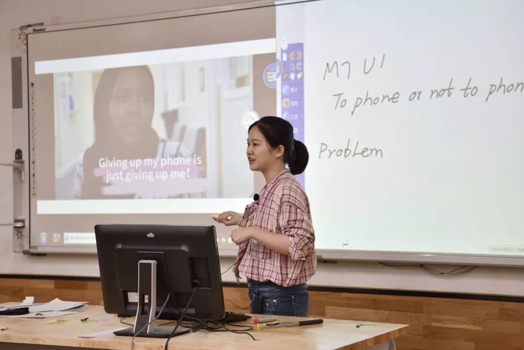 欧阳钰烨老师的课题为《To phone or not to phone 》,结构清晰,最后以郡园电视台为背景,让学生演绎自己生活中的手机问题。王力老师现场给学生们准备了多张海报,共同探讨如何在学??焐缤?。李恋老师带领学生共同探讨成功的品质,对现代技术的运用得到了大家的一致认可。朱立新老师以自己的经历作为切入点,教学生如何提出自己的建议。周笑老师熟练运用希沃技术,向学生们展示了精彩纷呈的大学课程。张旭娟老师用自己生动的肢体语言教学生如何用英语表达情绪的变化。李东东老师利用经典的天气预报配乐,让学生迅速进入情境,同学们纷纷化身天气预报员。