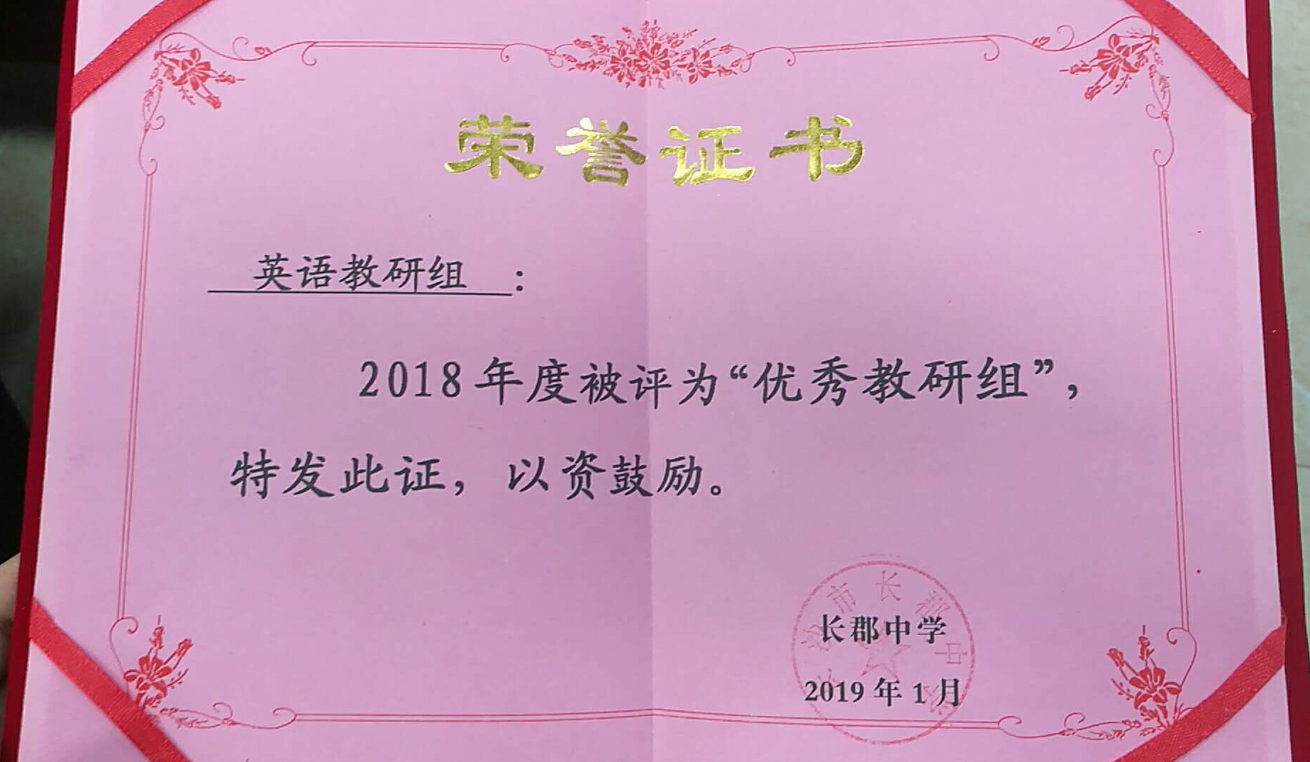 英语教研组获“优秀教研组”称号 作者:英语教研组 来源:英语教研组 发布时间:2019-01-28 浏览次数: 次 【字体:小 大】 1月21日,长郡中学举行年度表彰大会。经考核,在2018年度学校评比中,英语教研组荣获“优秀教研组”称号。 分享到: 【打印正文】