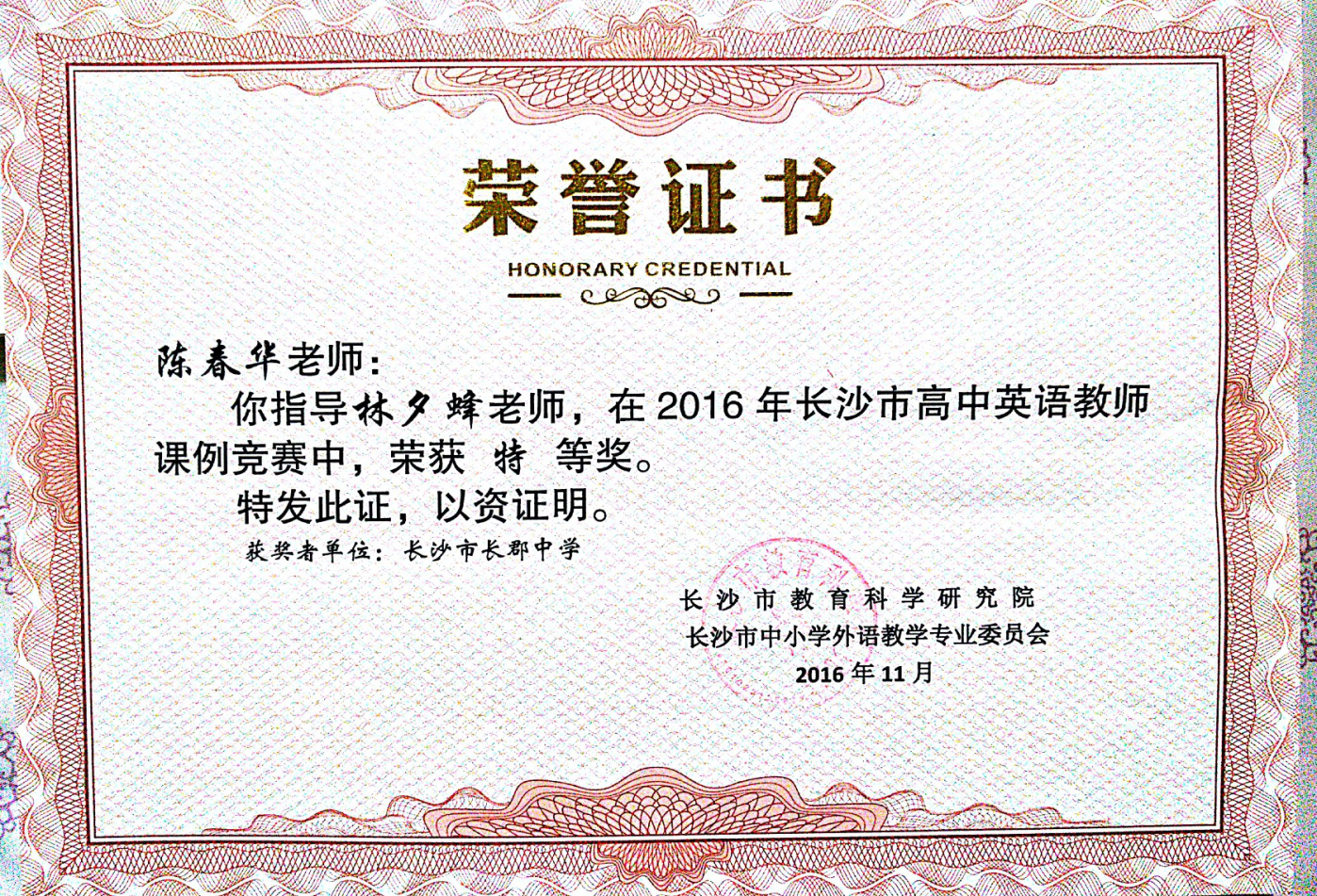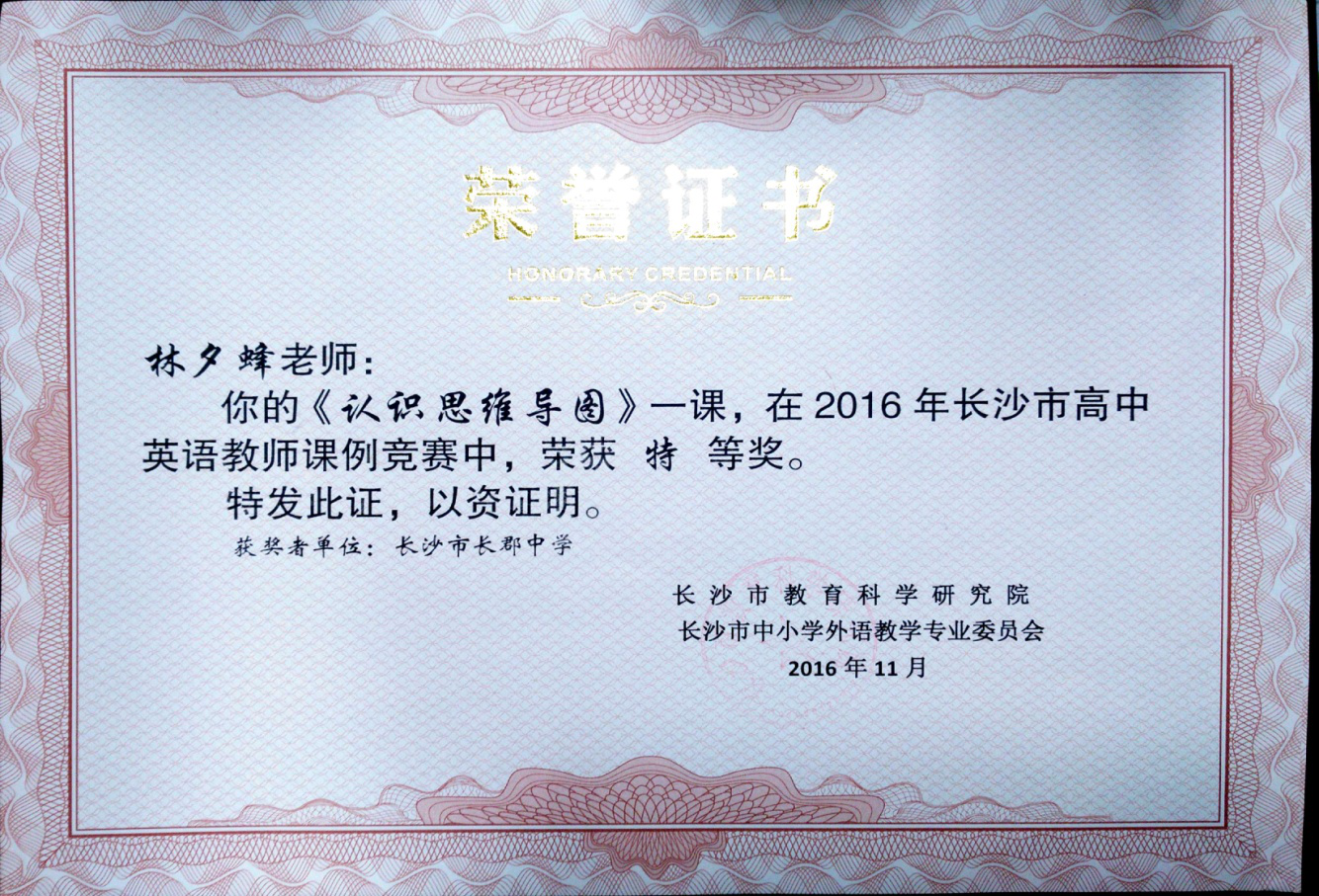 林夕蜂老师在2016年长沙市高中英语课例竞赛评选中荣获特等奖 作者:英语教研组 来源:英语教研组 发布时间:2016-12-09 浏览次数: 次 【字体:小 大】 2016年长沙市高中英语课例竞赛评选工作,经学校申报、区县推荐和专家名师评审等程序,已于近日结束。我校林夕蜂老师在陈春华老师的指导下提交的课例《认识思维导图》在本次比赛中荣获特等奖。 特此向全校老师报喜。 分享到: 【打印正文】