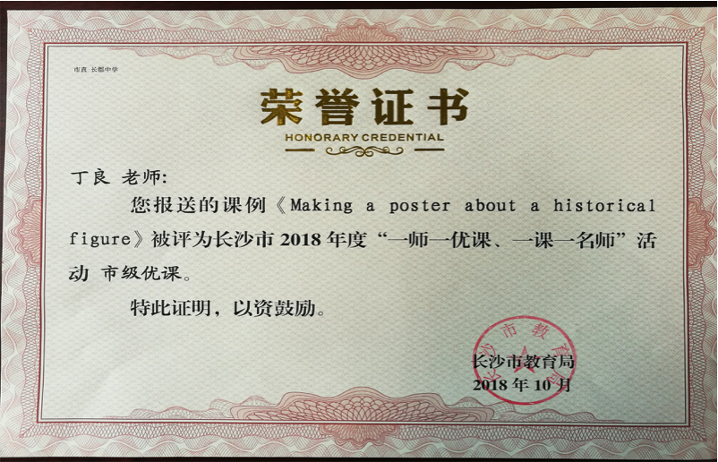 丁良老师展示课例荣获市级优课 作者:英语教研组 来源:英语教研组 发布时间:2018-12-17 浏览次数: 次 【字体:小 大】 我校英语教研组丁良老师报送的课例 “Making a poster about a historical figure ”被评为长沙市2018年度“一师一优课、一课一名师”活动市级优课。特向丁良老师表示祝贺! 分享到: 【打印正文】