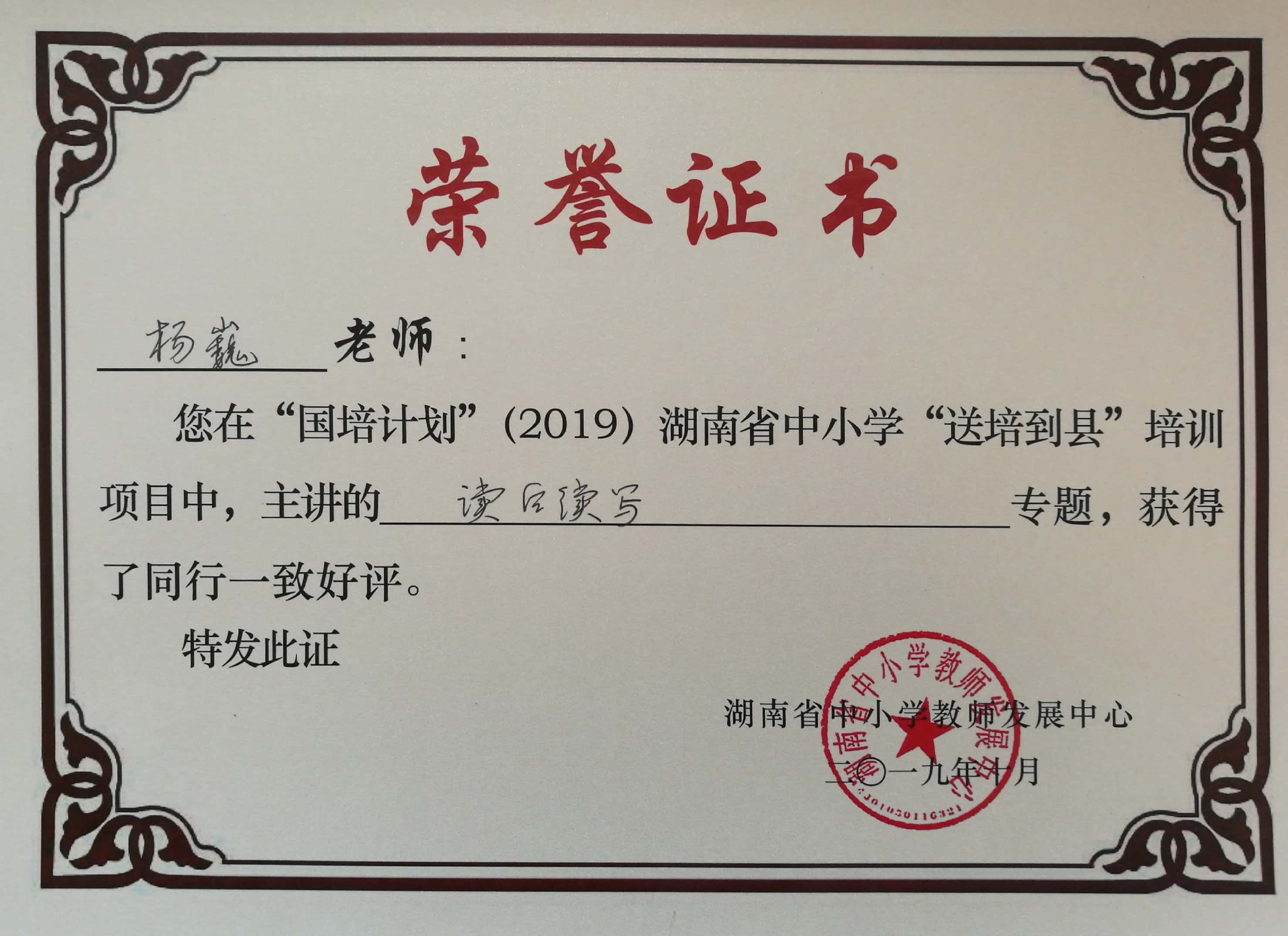 【英语】杨巍老师在湖南省中小学“送培到县”培训项目中主讲的读后续写专题获同行一致好评 作者: 来源: 发布时间:2019-11-10 浏览次数: 次 【字体:小 大】 杨巍老师在"国培计划"(2019)湖南省中小学“送培到县”培训项目中主讲的《读后续写》专题获得同行的一致好评! 分享到: 【打印正文】