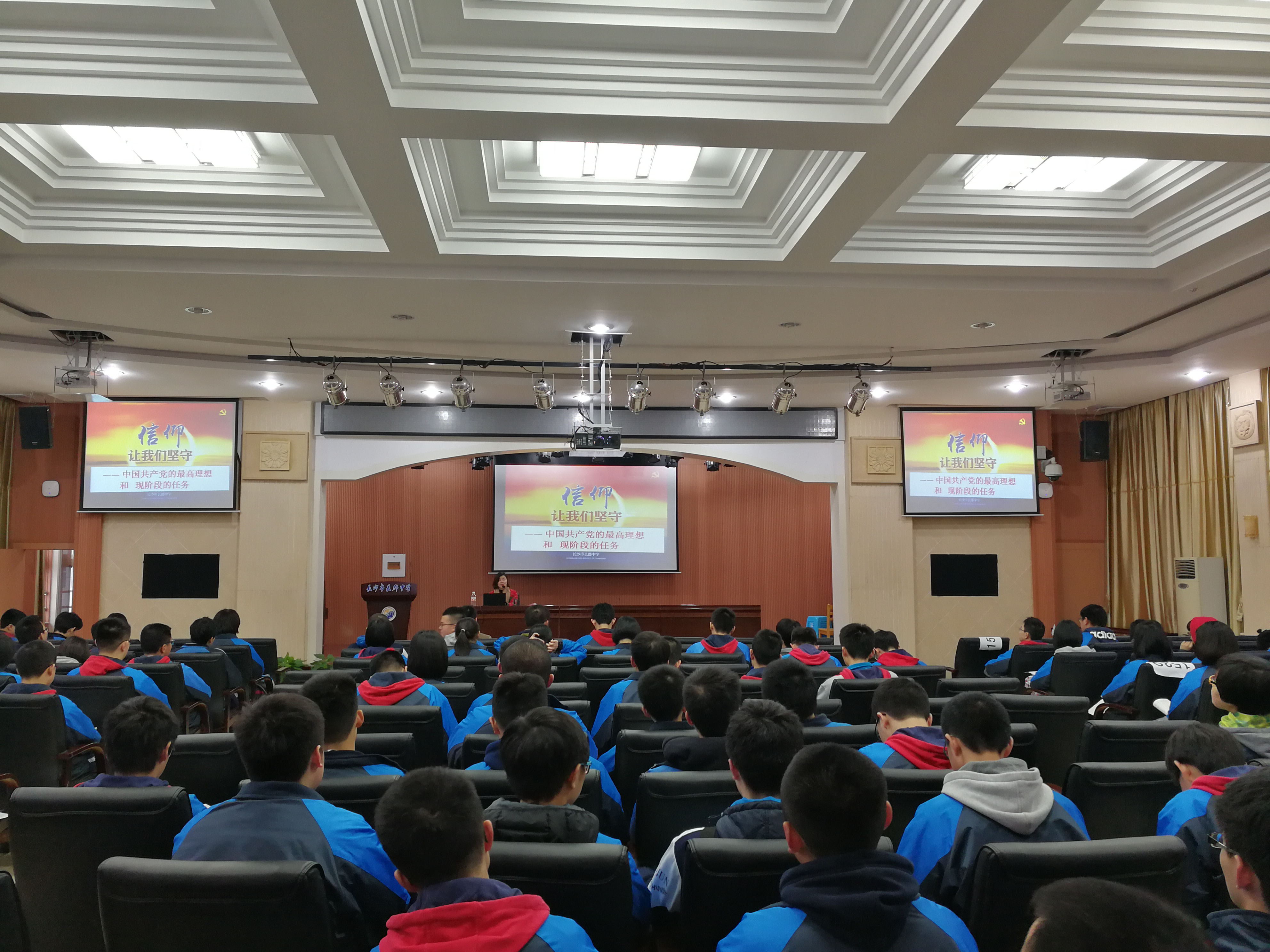2017年3月16日(周四)下午四时许,这是本学期第二十五青年党校的全体学员第二次聚集在一起,这次党课,我们共同聆听了由长郡中学行政党支部书记刘虹老师老师带来的,第二十五期青年党校第三讲——《信仰,让我们坚守》。