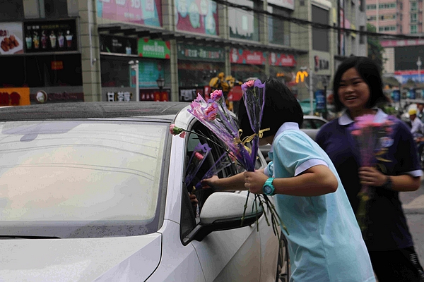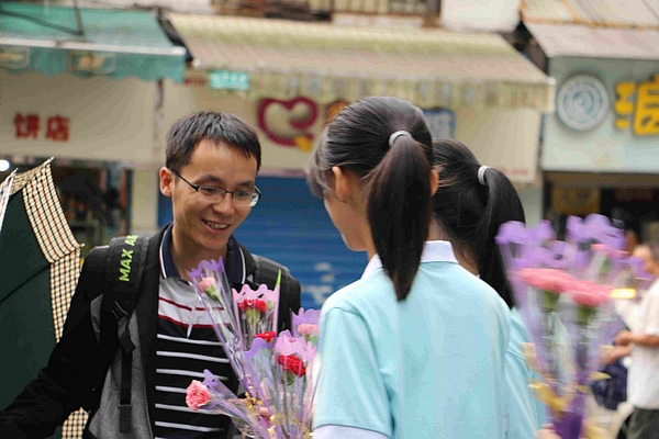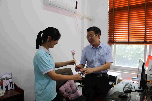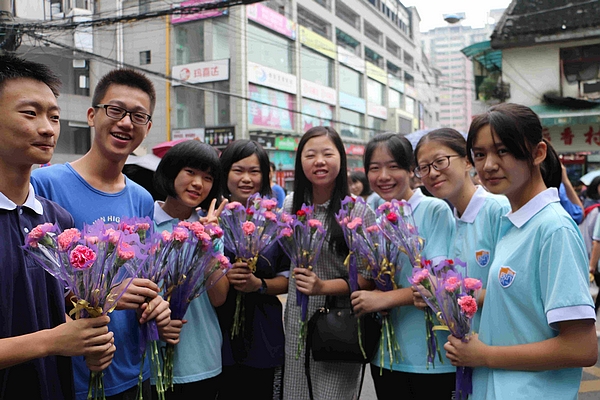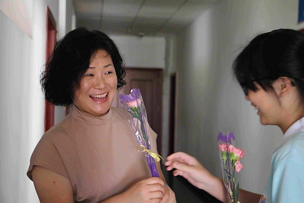 披着晨光,校团委、校学生会、校礼仪队的同学早早到学校门口,整齐地排成两列,捧着芬芳待人的朵朵康乃馨开始了“一朵花的心愿”的温馨祝?;疃?。早晨的四十分钟内,数百多鲜花从学生干部和礼仪队同学们的手中传递。校门口分发的鲜花还蘸着水滴,伴随着微笑和祝福,传递给了一位位老师们。老师们收获了清香的鲜花,也收获了沉甸甸的,来自于长郡学子的最诚恳的赞美