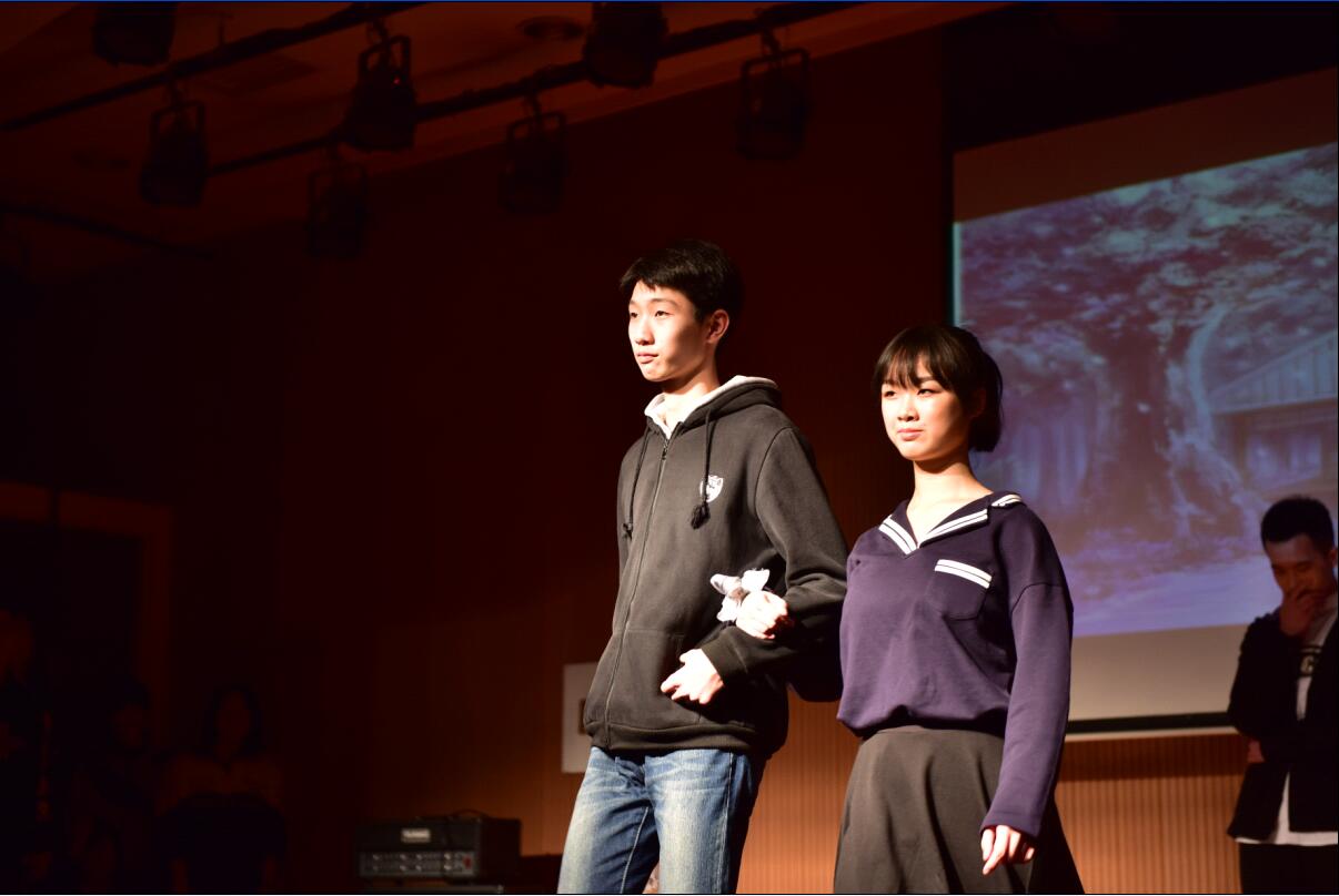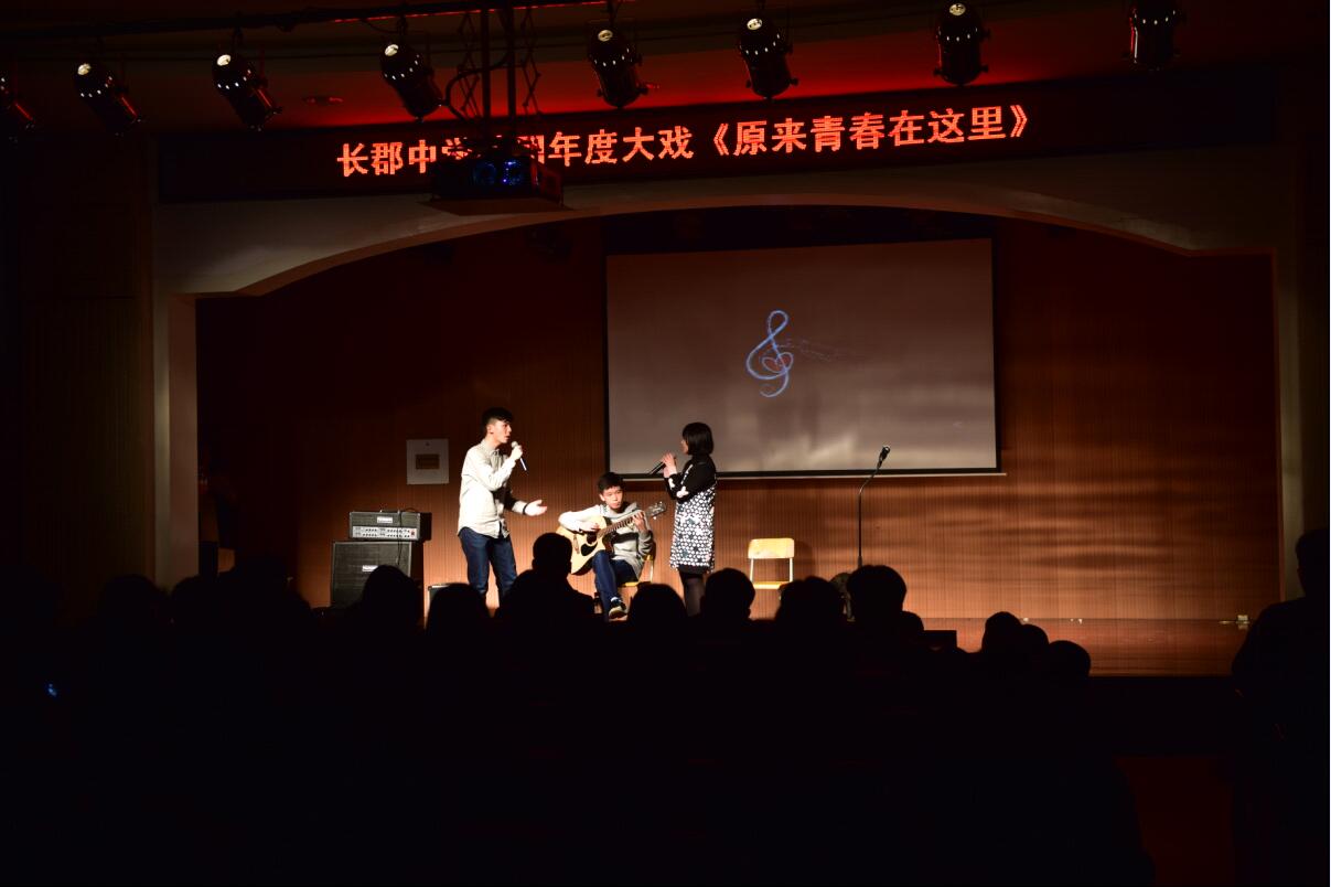 《原来青春在这里》则由MUSE戏剧社导演,军事社、音乐社、HUNK乐队、礼仪社、ACG社联袂出演,以“学习”寻找 “青春”为线索融合各社团特色节目,将戏剧、乐队、舞蹈、走秀、武术等杂糅起来,活泼轻快,带着长郡学子独有的青春风范。军事社出其不意地出现,为我们真实还原了恐怖分子入场与警察搏斗的场景,枪林弹雨再配上玻璃炸碎的声音,以及纯熟的格斗动作,令观众仿佛身临其境,音乐社陈宇晗的萨克斯一响起,立马就将我们带入了民谣酒吧的情景当中,礼仪社无论是古装的清新淡雅,还是现代服饰的青春靓丽,都让大家沉醉不已。ACG社5个可爱美丽的女生给观众带来的《极乐净土》瞬间就引爆了全场的气氛。HUNK乐队电吉他和鼓声一响起就带动了全场观众的热情,大家跟着女主唱一起哼唱、鼓掌,气氛十分热烈。戏剧社的演员们全程投入的将观众带入到真实的情景当中,将一个一个场景顺畅紧密地联系起来。