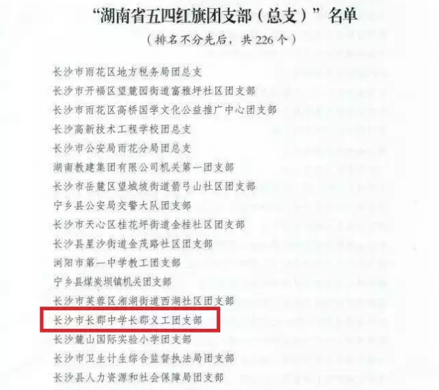 与此同时,从团省委传来喜讯:长郡中学长郡义工团支部被评为“湖南省五四红旗团支部”,这是对我校共青团工作品牌的再度肯定。